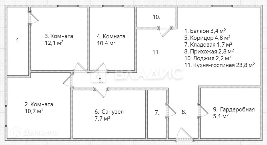 Общая площадь: 80,0 кв.м