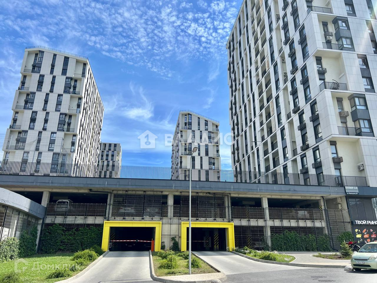 На первых этажах коммерческие помещения: студия детского развития, клиника неврологии, тренажерный зал. В пешей доступности располагаются образовательные учреждения, продовольственные магазины, гипермаркет стройматериалов Каиса, ТЦ Клевер и т.д.
