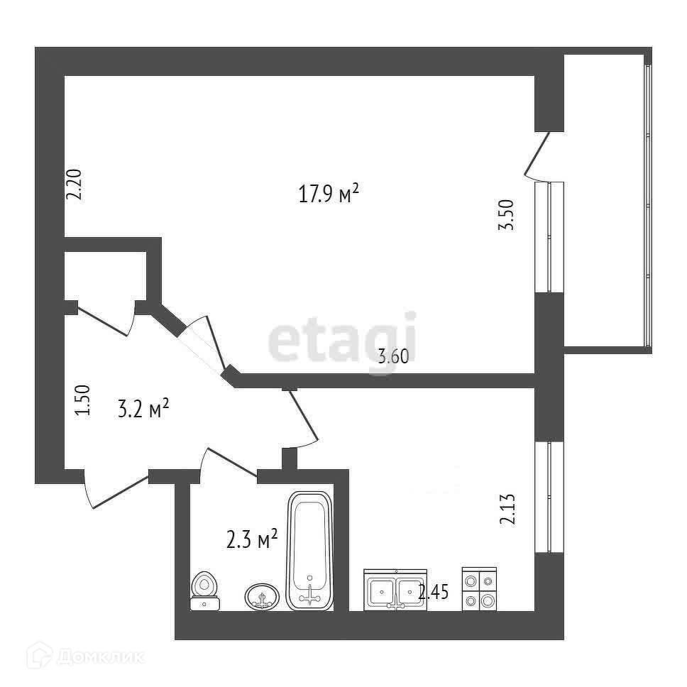 Общая площадь 28.6 м2