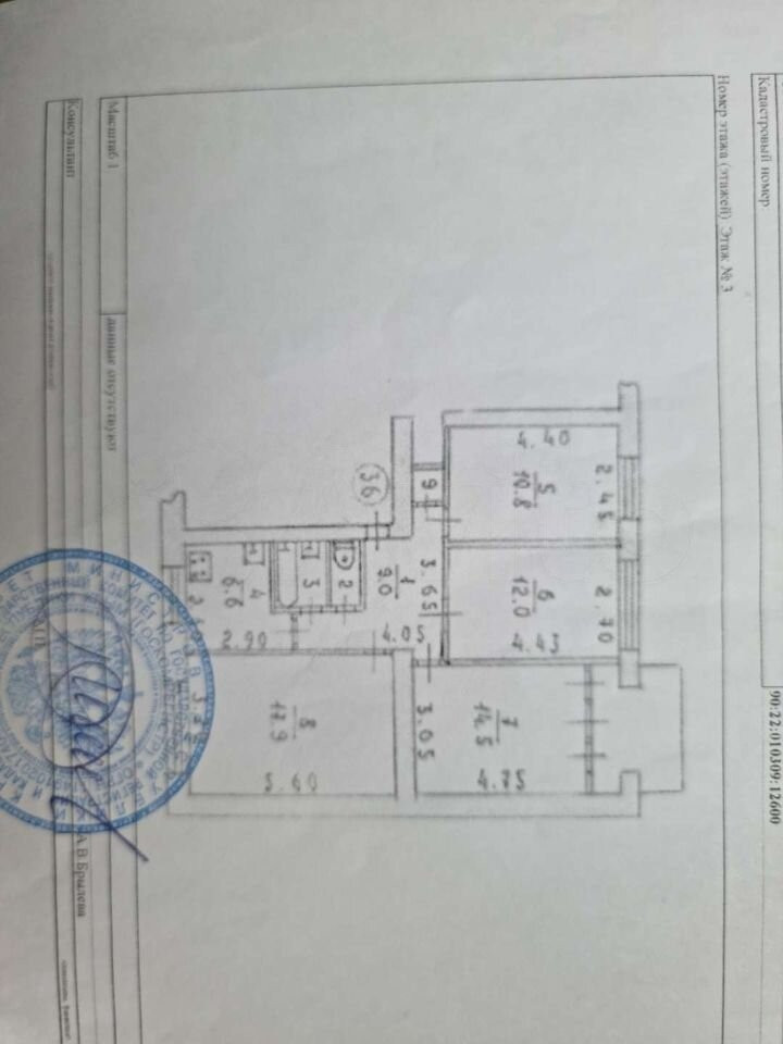 ремонтом, 3 изолированных комнаты(10.8 кв.м./12 кв.м./14,5 кв.м. и