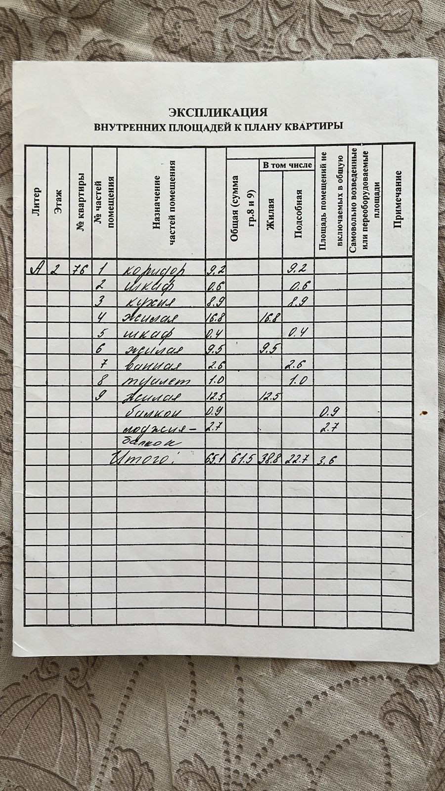 Общая площадь 61.5 м2