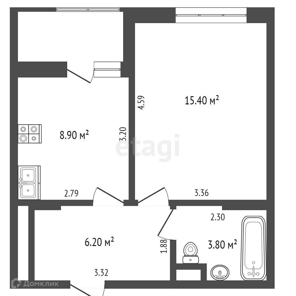 Общая площадь 36.6 м2