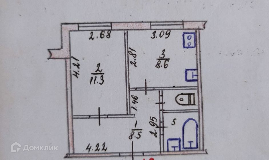 Жилая площадь 11.3 м2