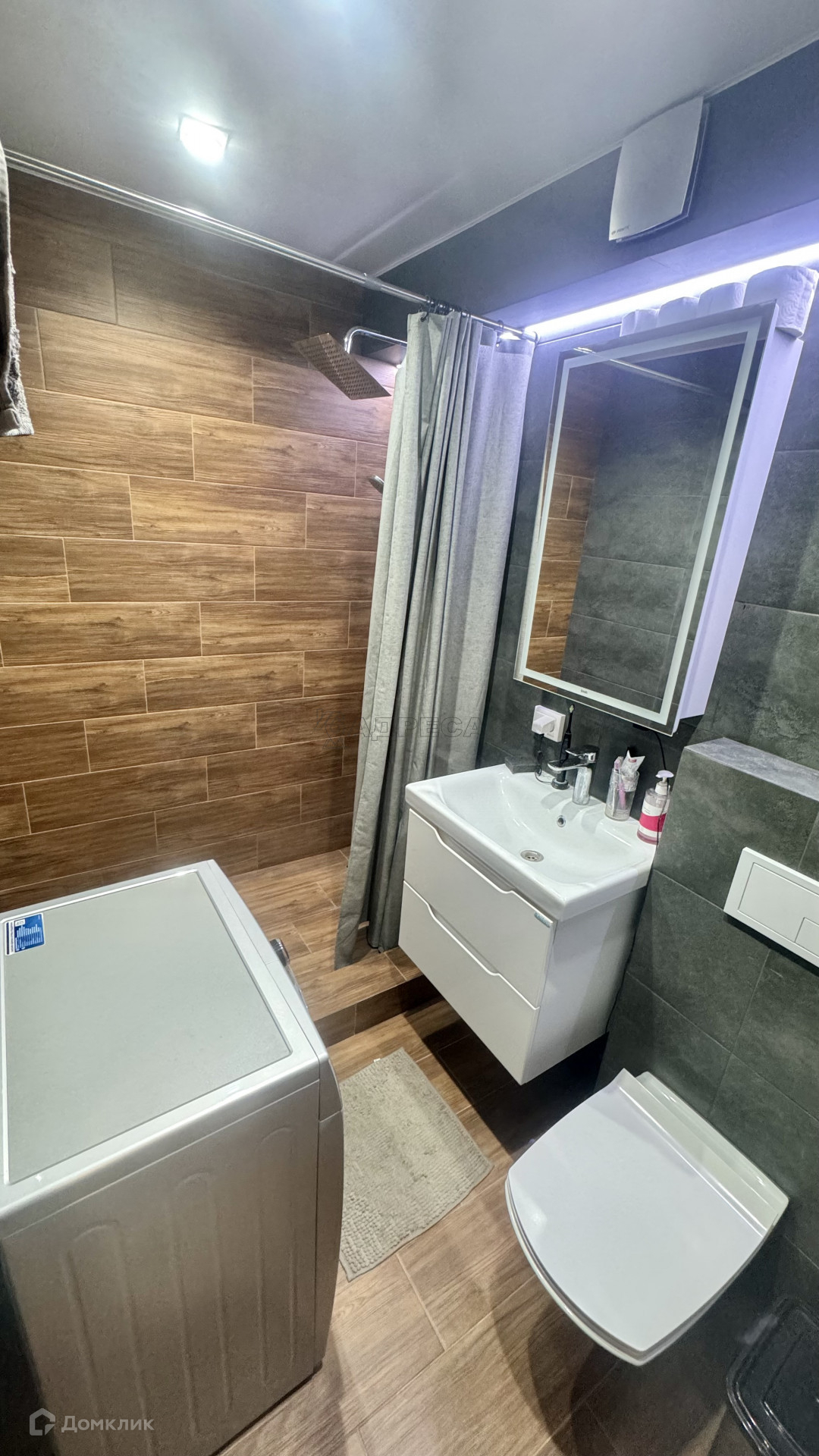 Санузел полностью в плитке, оборудован сантехническими приборами и тд.