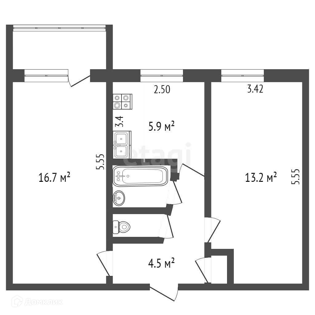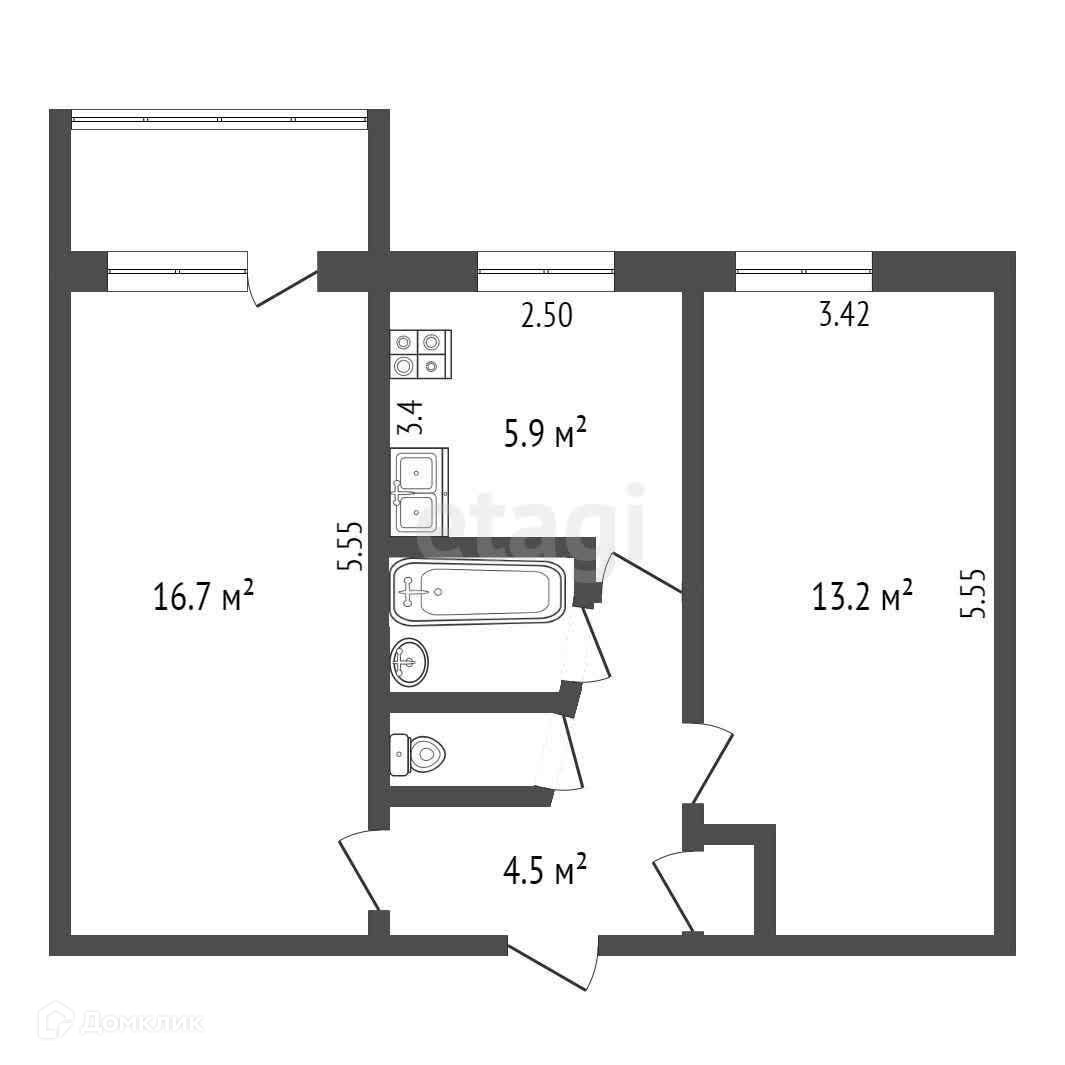 Площадь кухни 5.9 м2