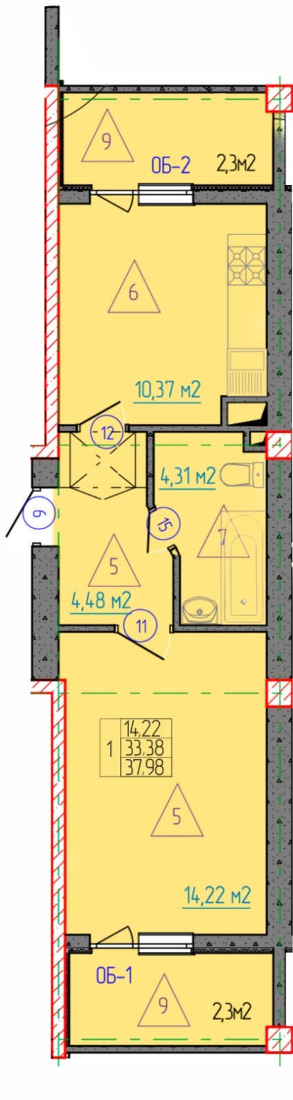 Общая площадь 39 м2