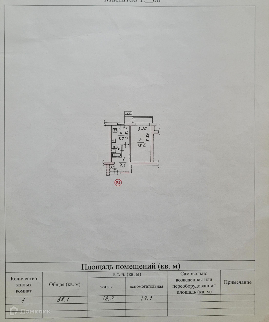 Общая площадь 38.1 м2