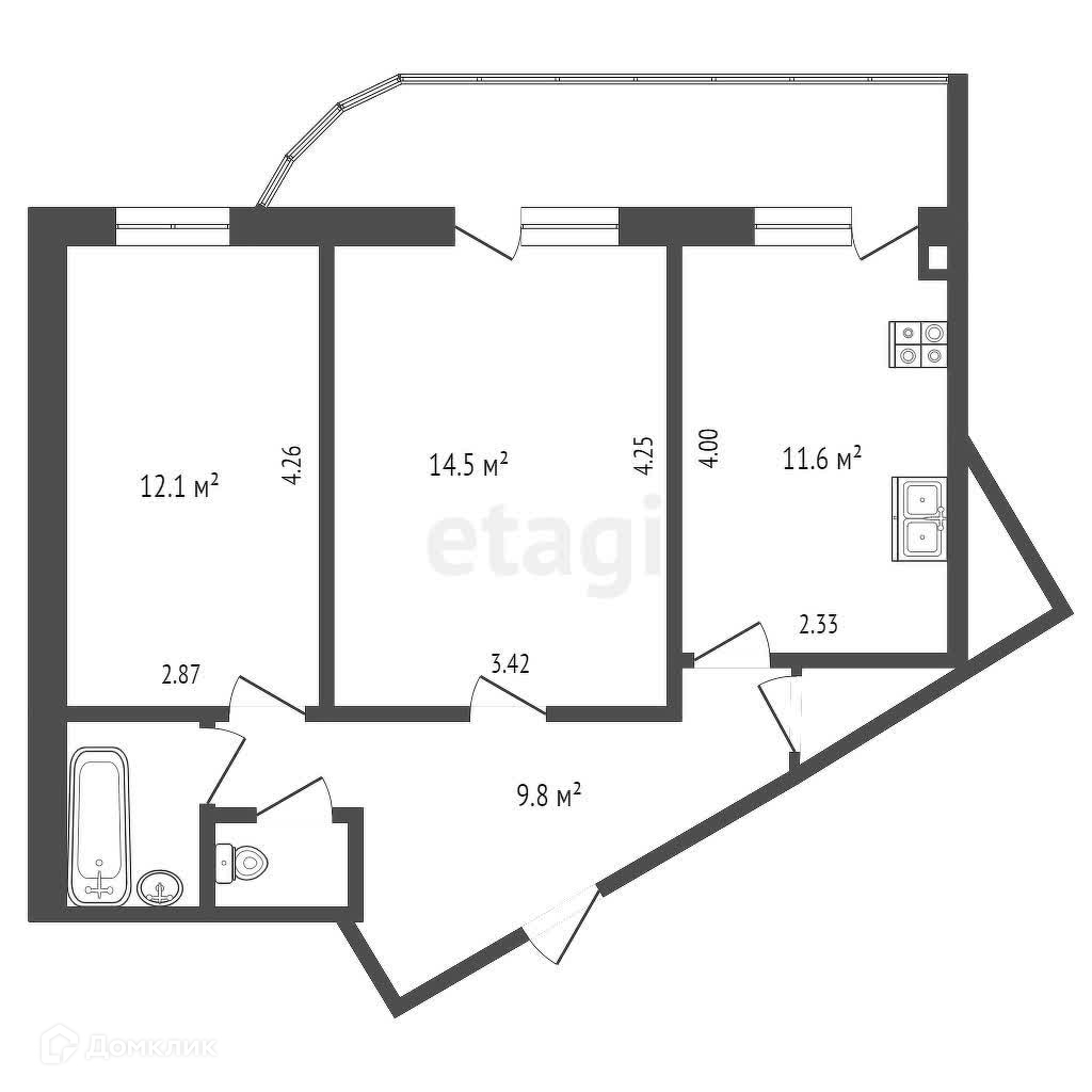 Общая площадь 52.2 м2