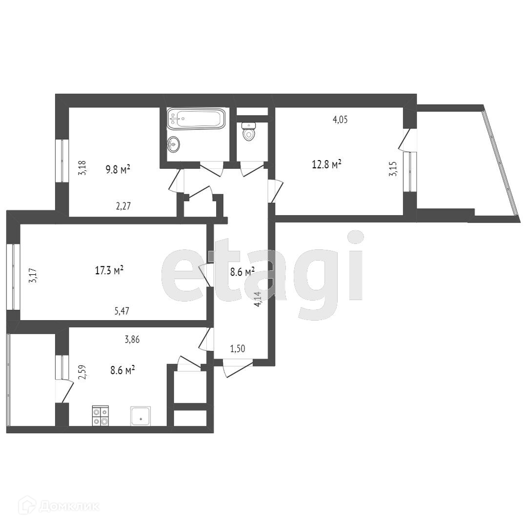Общая площадь 58.6 м2