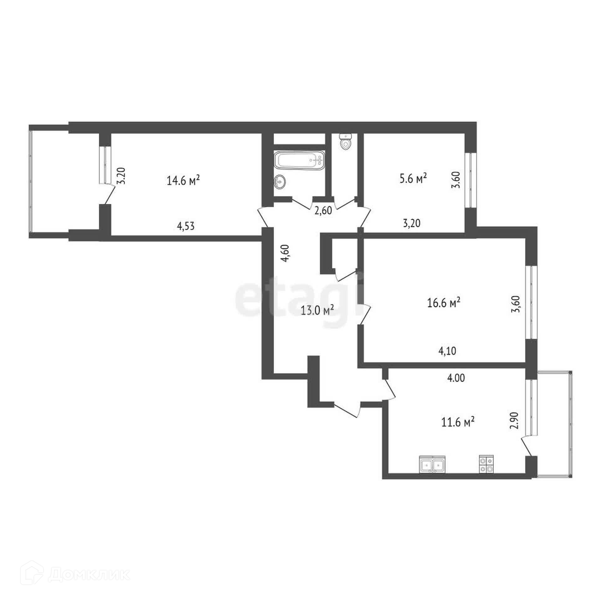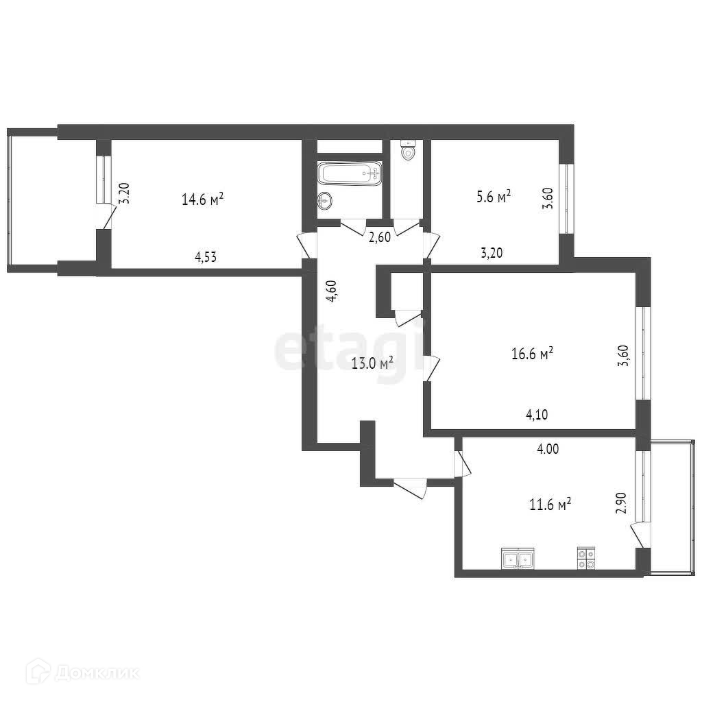 Общая площадь 68 м2