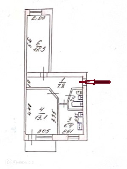 Площадь кухни 6.4 м2