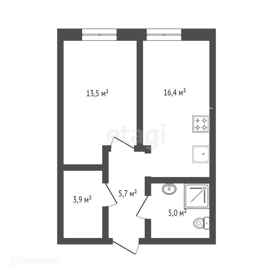 Общая площадь 44.5 м2