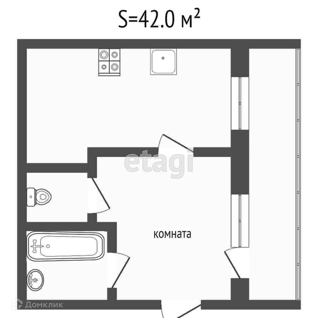 Балкон, лоджия 1 балкон
