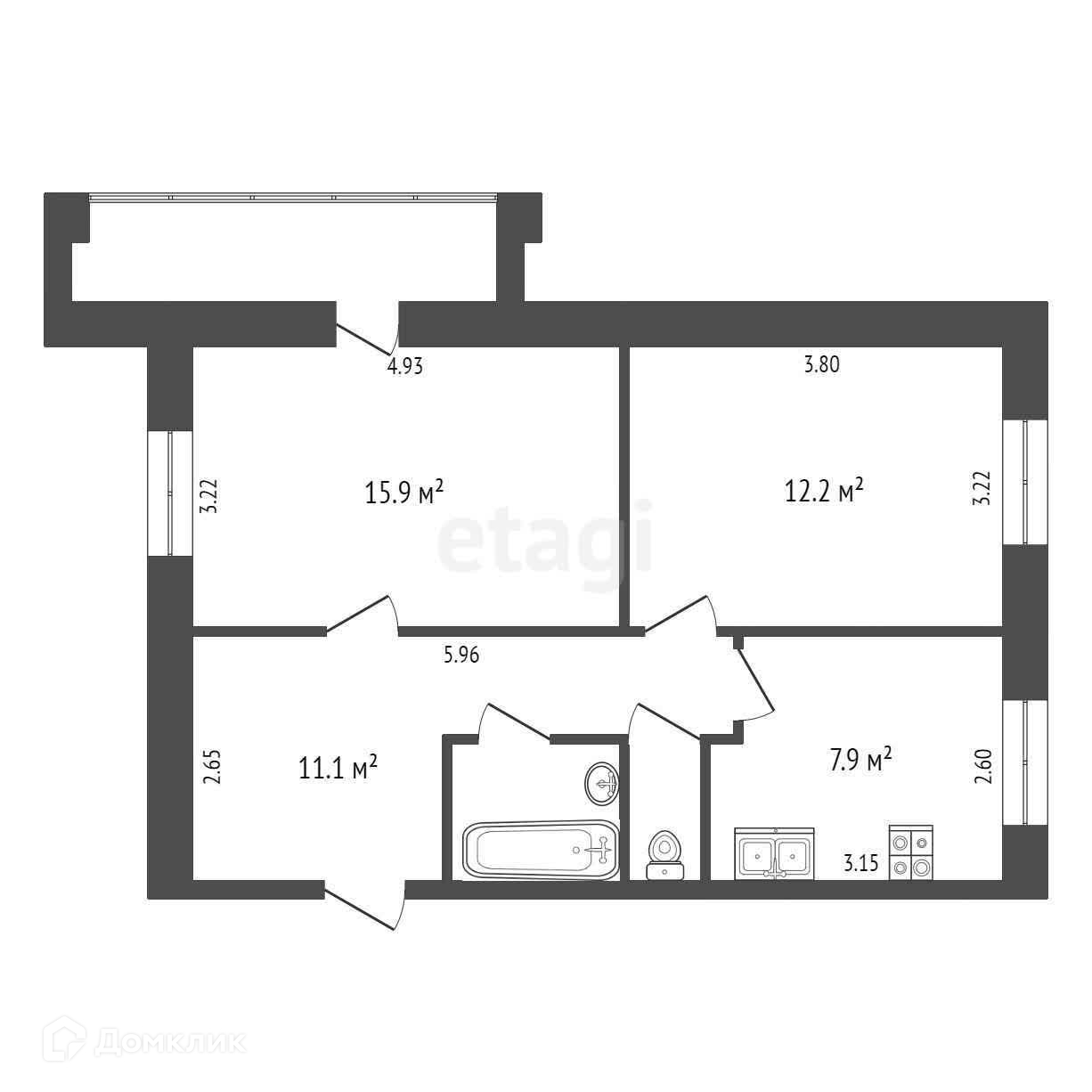 Общая площадь 52.7 м2