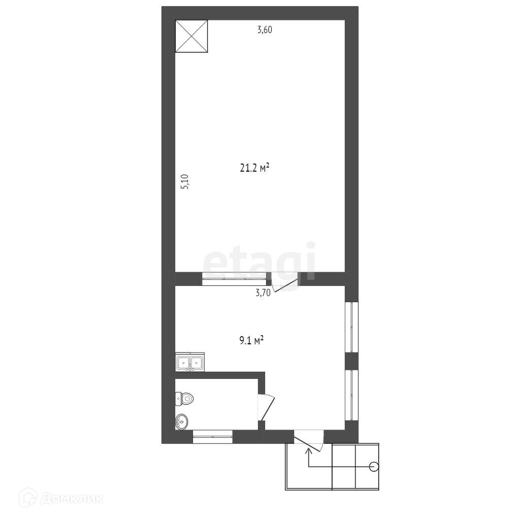 Общая площадь 30.3 м2
