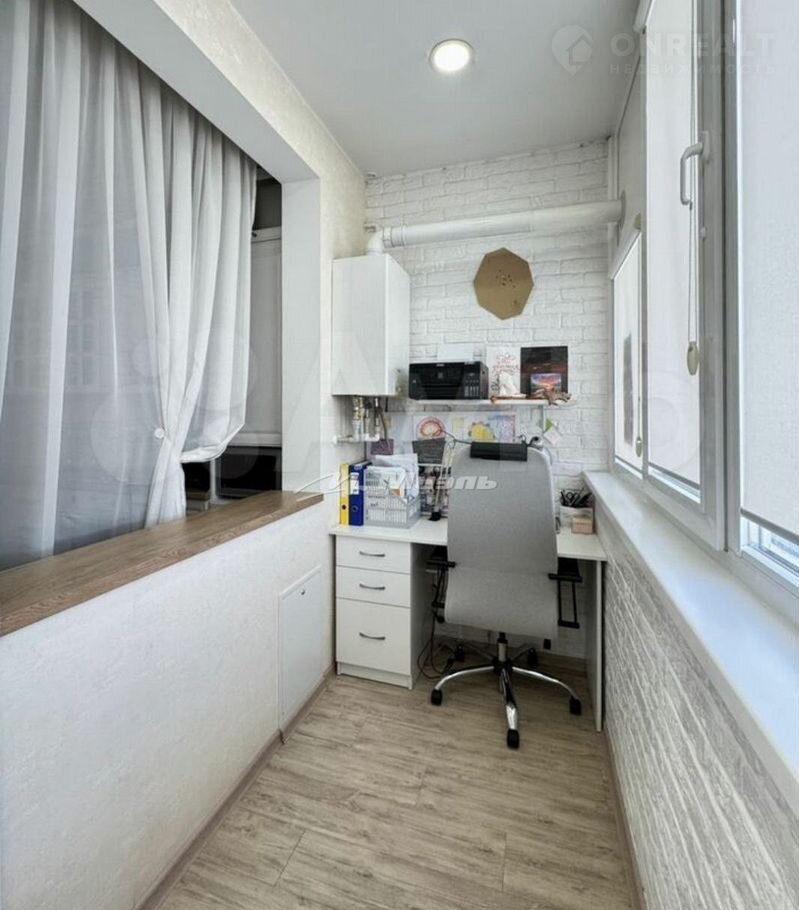 Просторный , утепленный балкон с оборудованной рабочей зоной,  платенным шкафом.