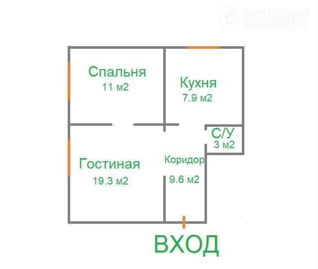 Общая площадь 50.8 м2