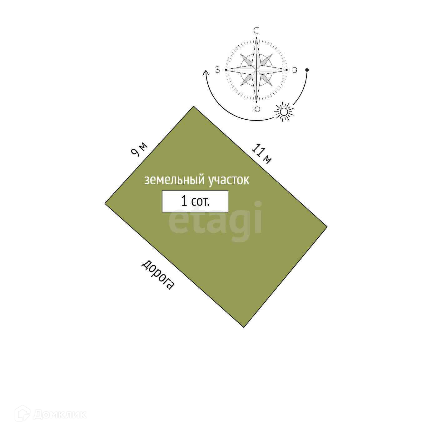 Площадь участка 1 сот.
