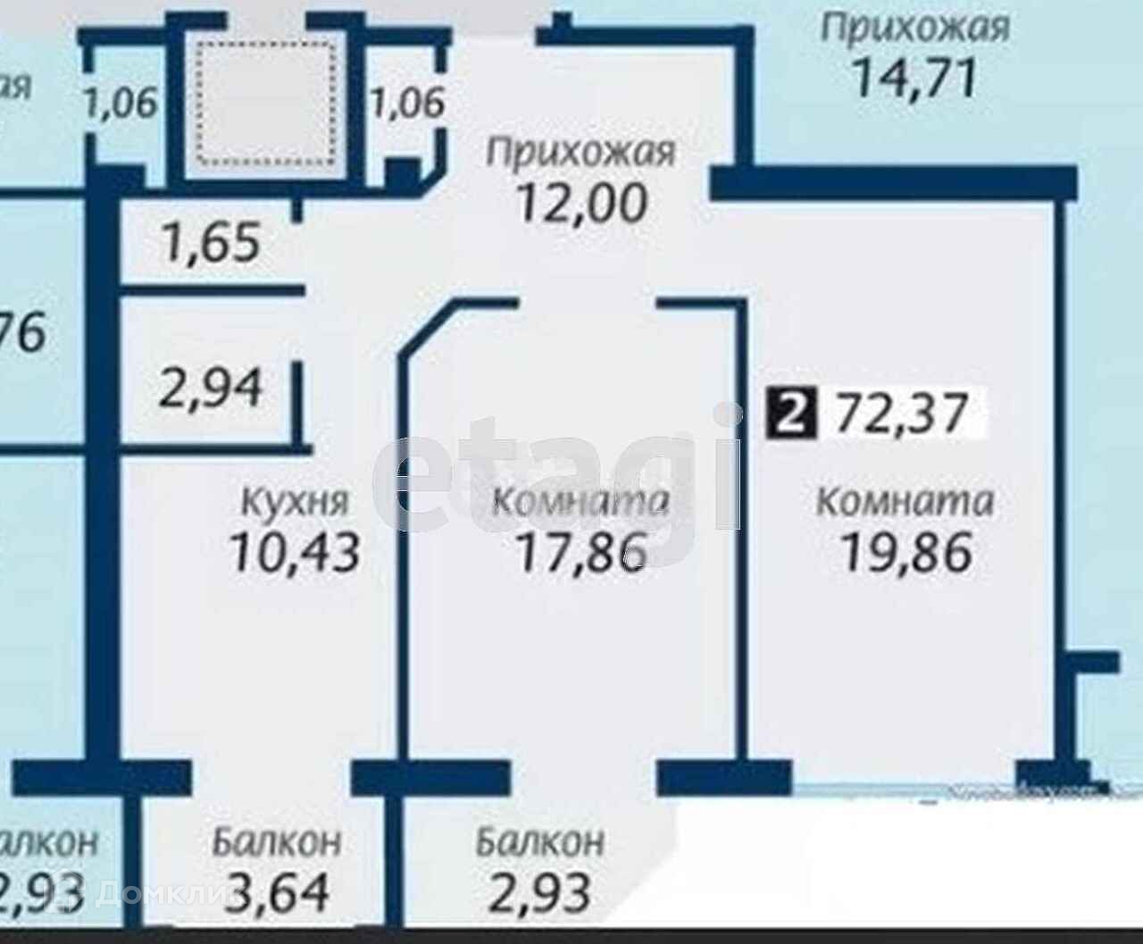Общая площадь 72.4 м2