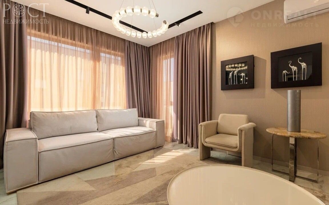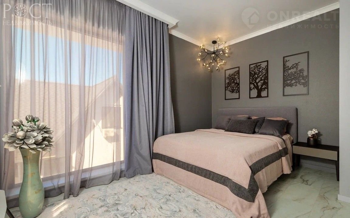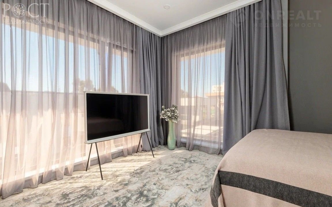 Внутри дома роскошное наполнение. Доступ по биометрическому замку. Огромная прихожая и большой зал с барной стойкой и винным шкафом, сауна с ванной комнатой, оборудованной гидромассажной панелью на первом этаже. Второй этаж представлен просторной кухней с огромным холодильником, большим и малым залами, санузлом, спальней с огромным шкафом-купе, на третьем этаже разместились 3 спальни с панорамными окнами и кондиционерами, шторами блек-аут и тюлем из Италии, большая гардеробная с огромным балконом-подиумом и ванная комната. Мебель Италия и Европа, кухонная техника АЕG, японские кондиционеры, высокие матрасы с памятью, дорогие телевизоры, ковры, декор, панно из стабилизированной зелени на первом и третьем этаже.