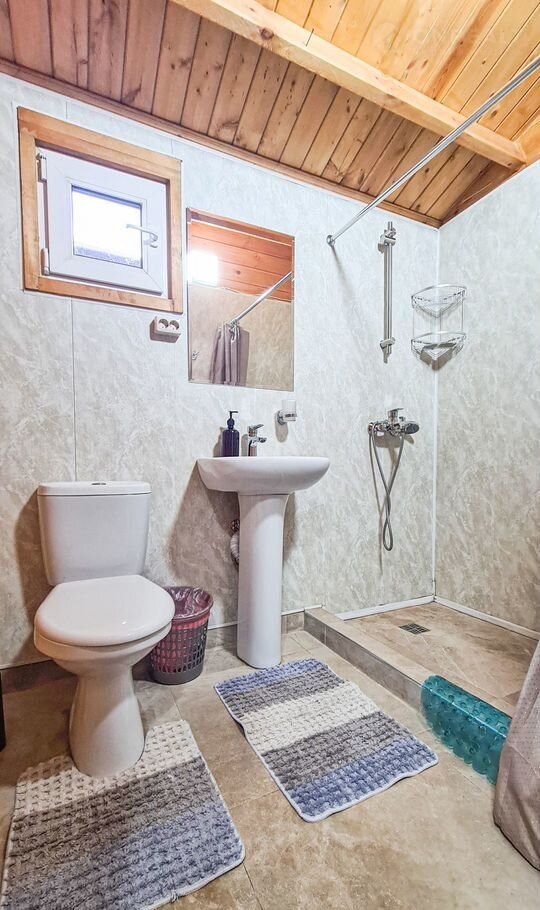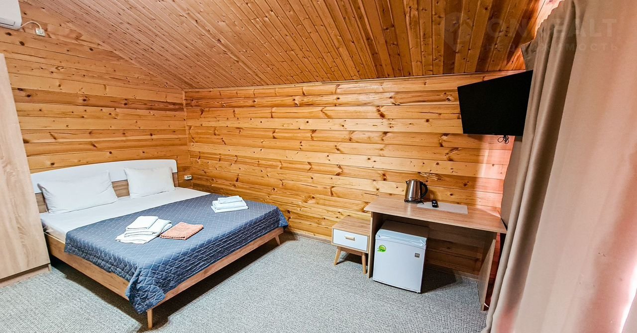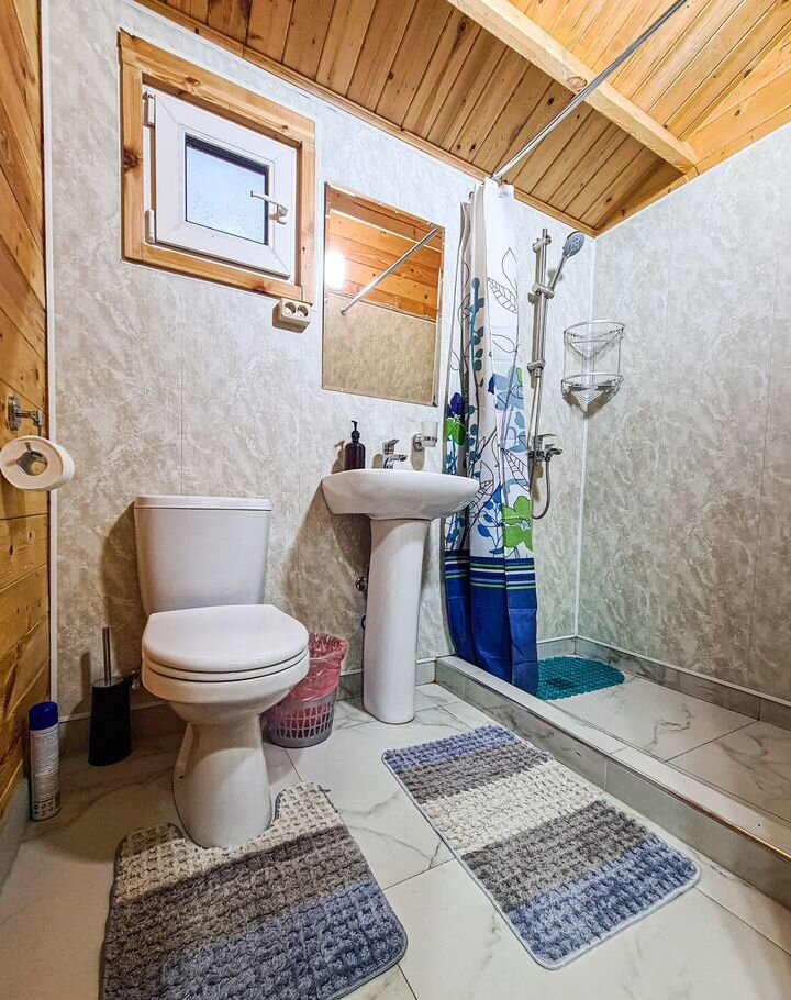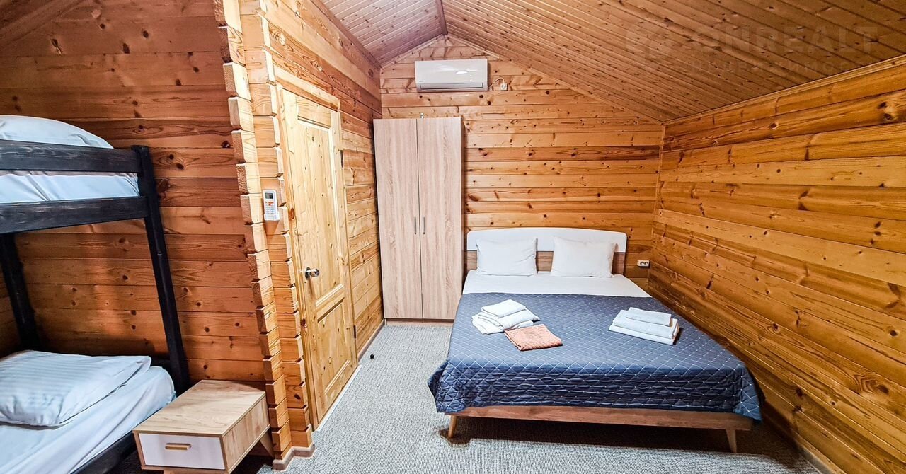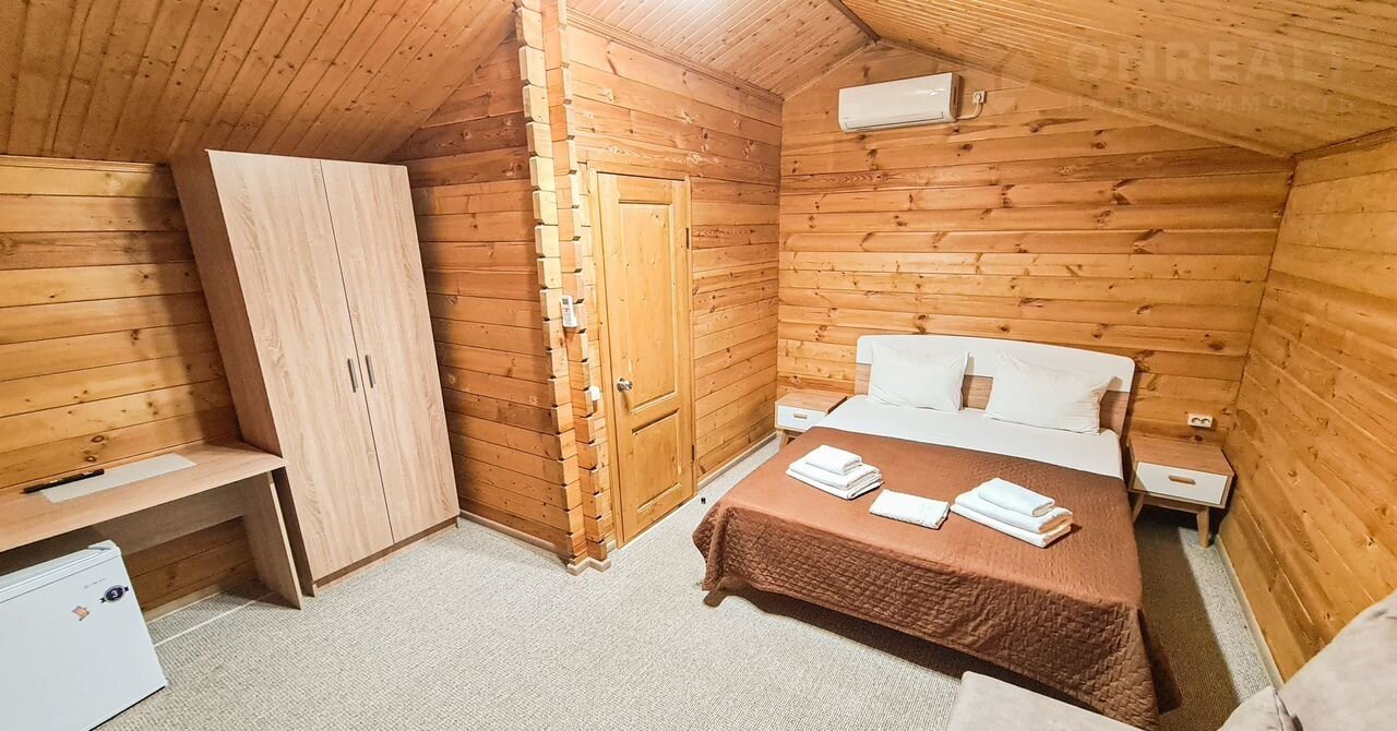 Отдельный домик с террасой - оснащен комфортными двуспальной и двухъярусной кроватями или двуспальной кровать с диваном-кроватью для двоих. Каждый домик оборудован следующими удобствами: мини-холодильник, кондиционер, телевизор, СВЧ - печь, электрический чайник, фен для волос, шкаф для одежды, отопление в холодное время года, средства личной гигиены (мыло, шампунь, гель для душа, туалетная бумага), полотенца и постельное белье, ложки для обуви, тапочки, комплиментарно при заезде предоставляется питьевая вода. Индивидуальный санузел в номере. Площадь номера 25 кв.м.
