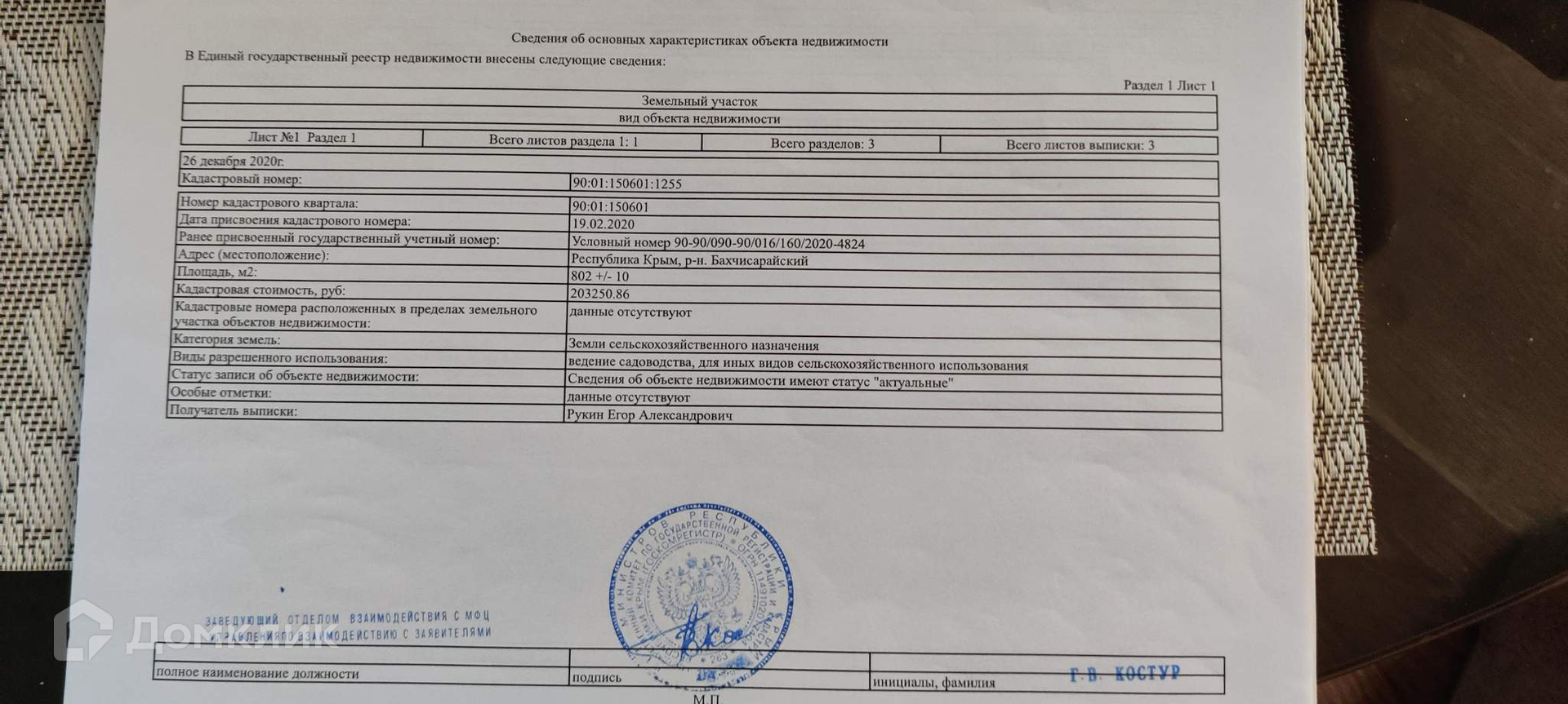 Категория земли - земли с/х назначения, разрешенное использование - садоводство, код  13.2 (с возможностью строительства жилого дома). Оформлено в собственность (ЕГРН см. фото).