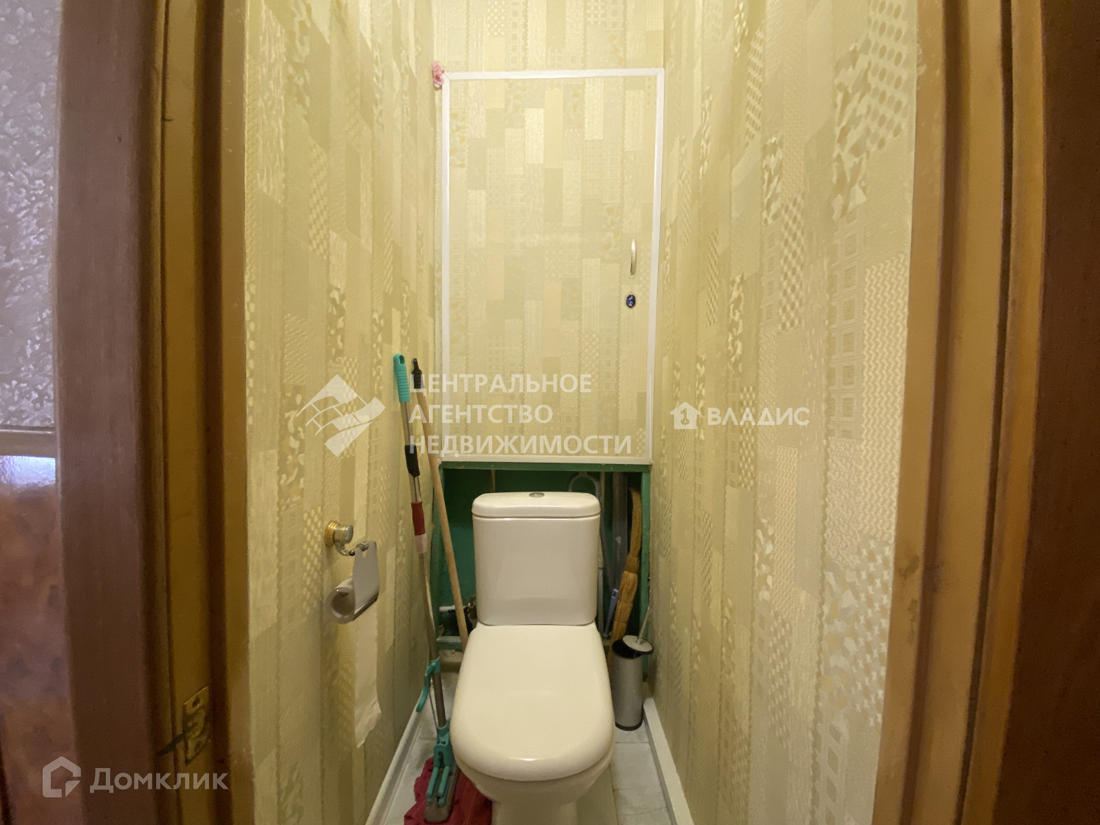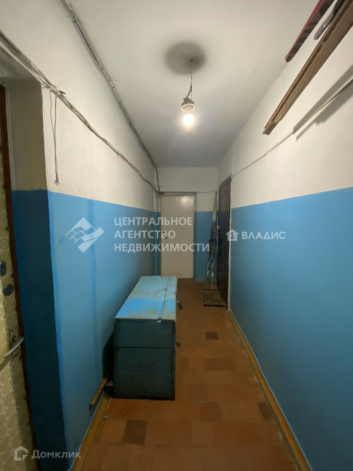 На полу бетонная стяжка, сверху линолеум. Счетчики на воду установлены.