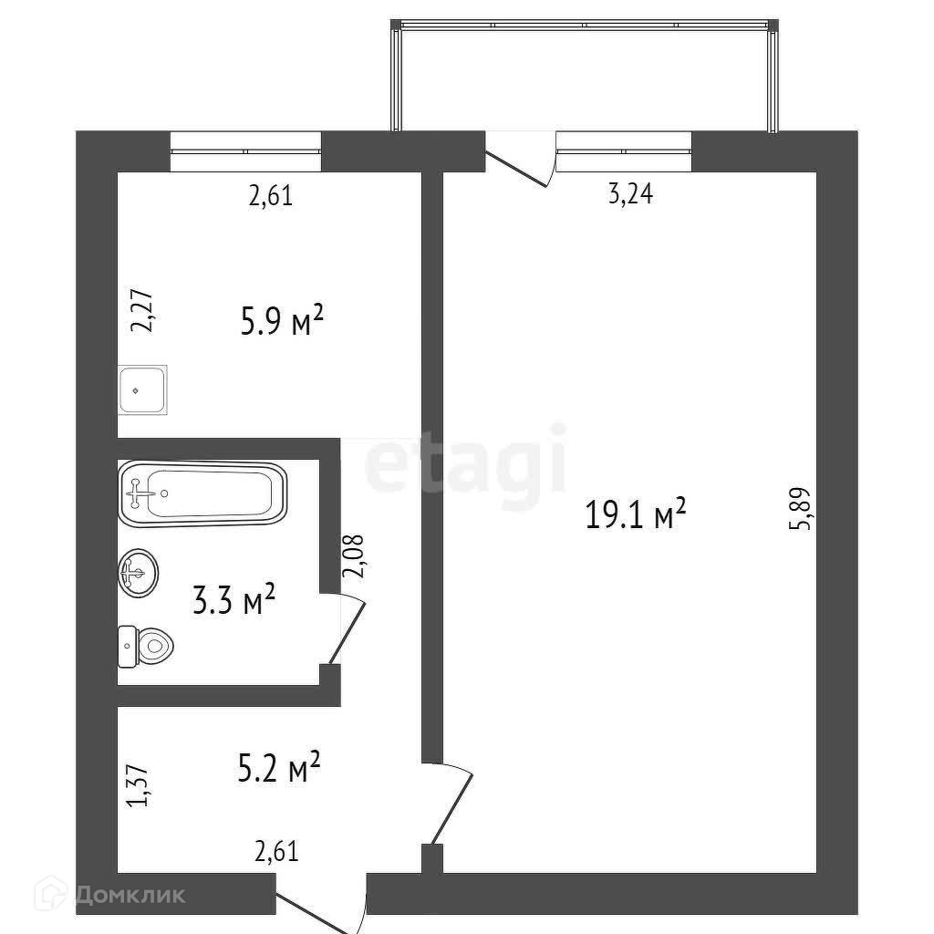 Площадь кухни 5.9 м2
