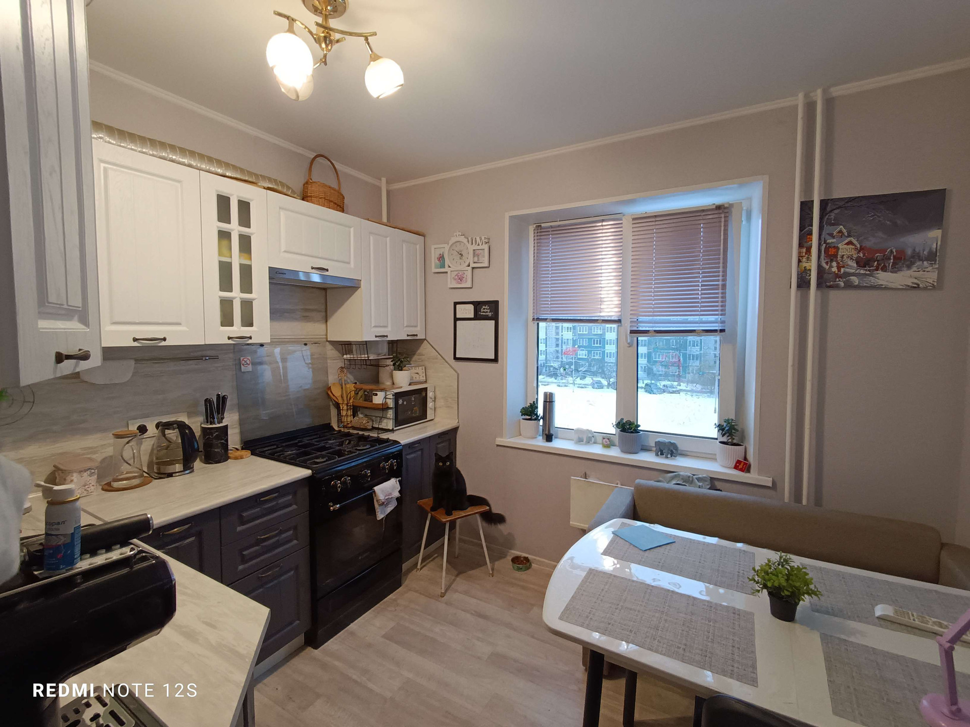 Квартира тёплая,установлены двухкамерные стеклопакеты,балкон застеклён.Сделан ремонт,ванна и туалет требуют косметического ремонта. Остаётся кухонный гарнитур с техникой.проводкаи трубы полностью заменены,счётчики на воду.