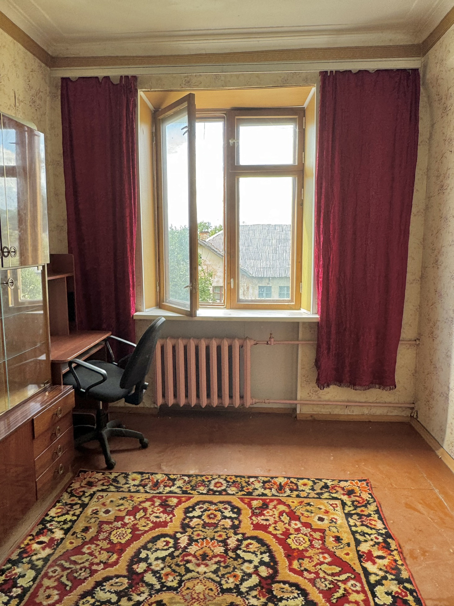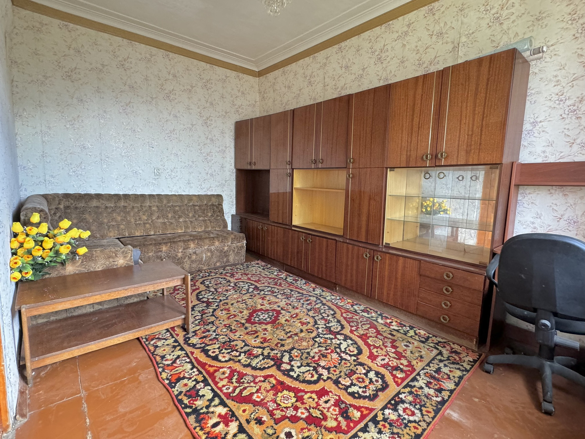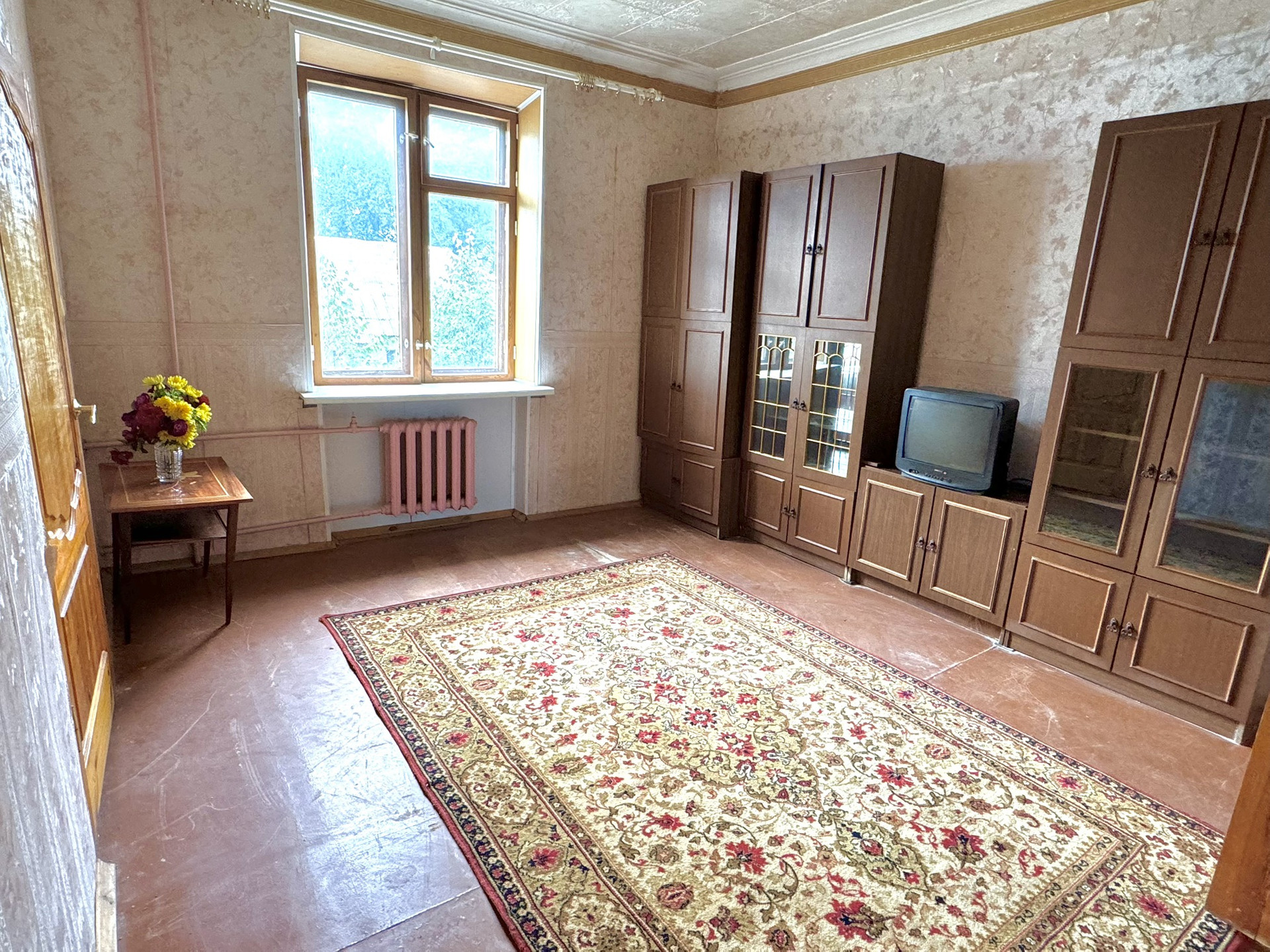 Просторные комнаты, высокие потолки 3м, большие окна. В квартире все необходимое для жизни есть- мебель и техника остается новым хозяевам.