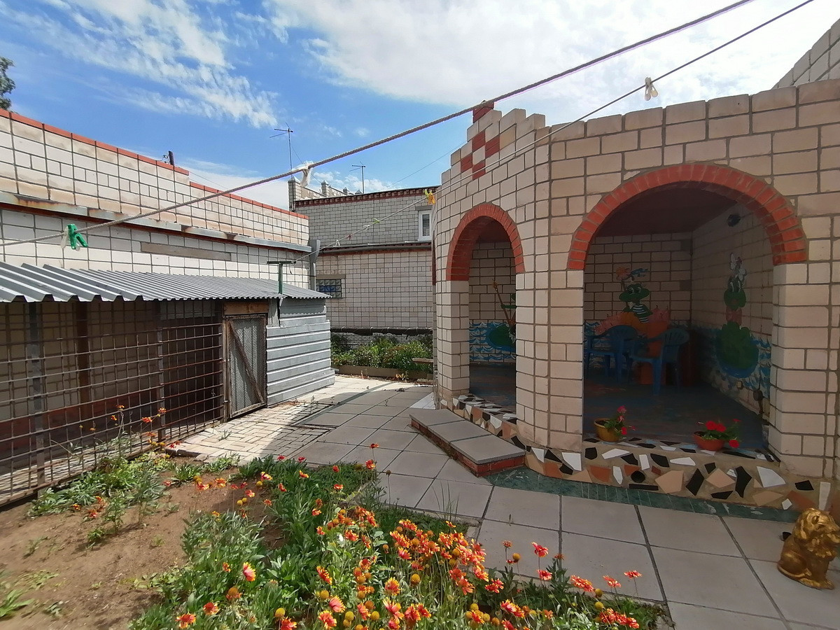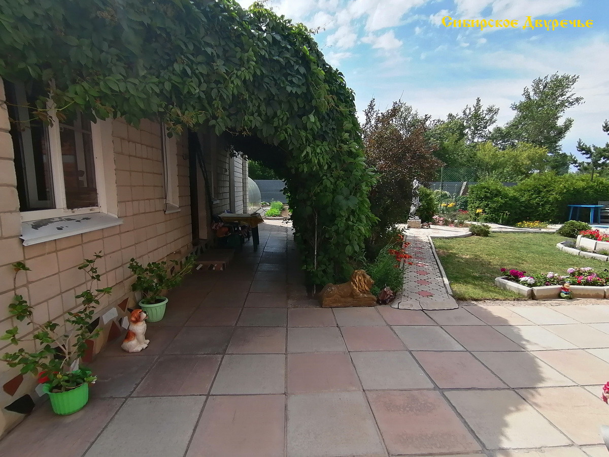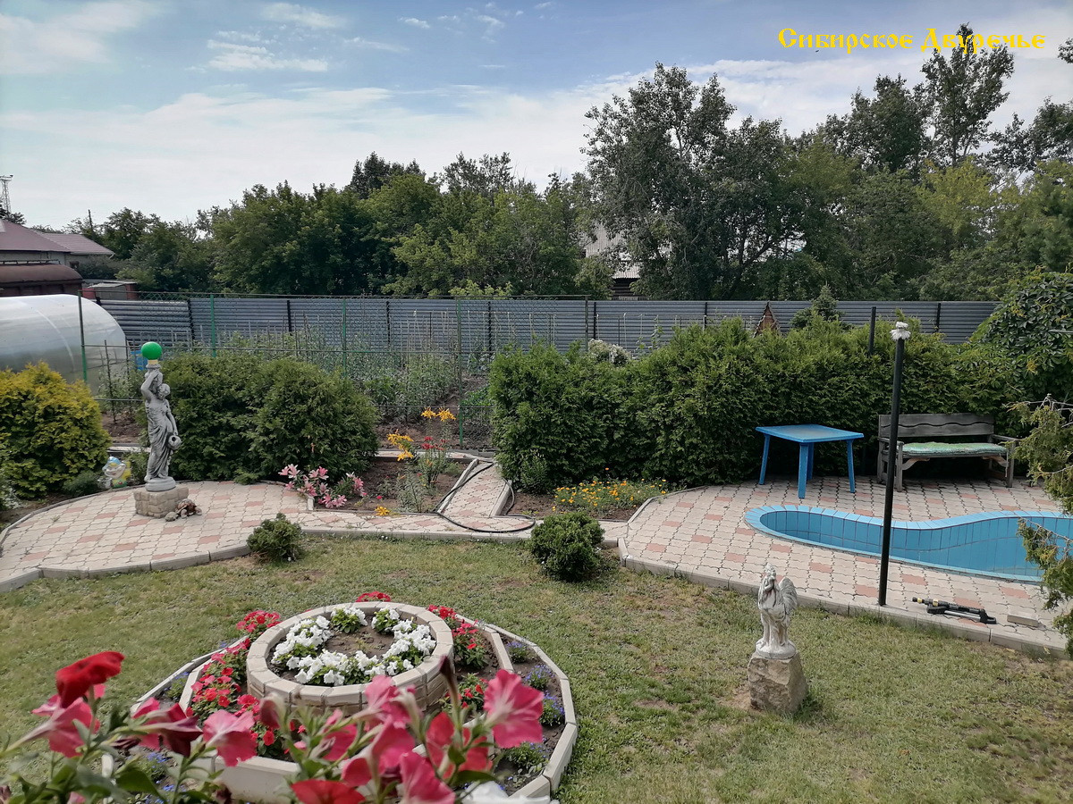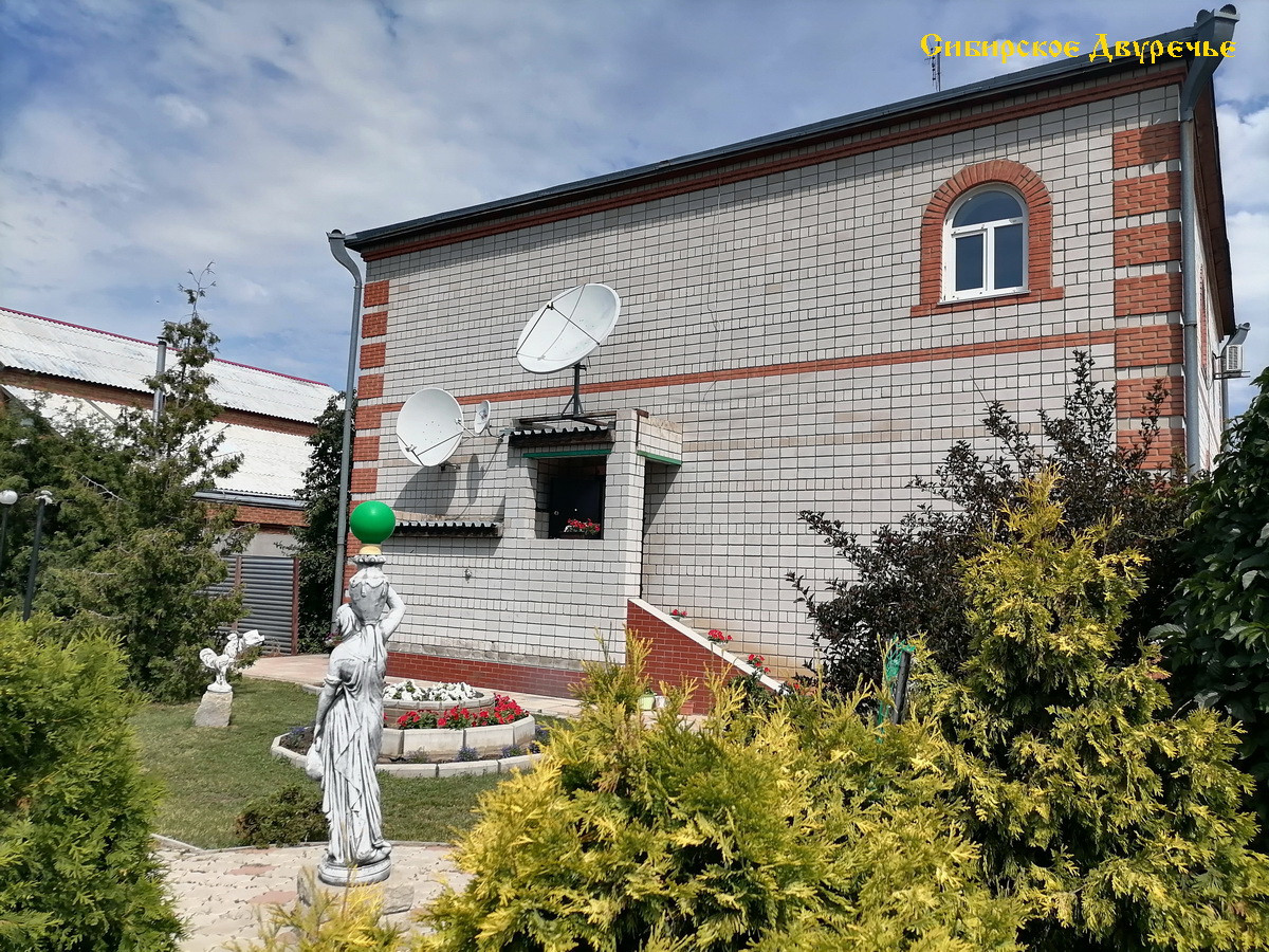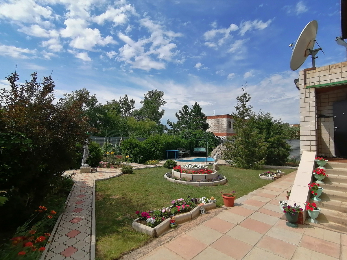 На 11 сотках (ИЖС) расположены дом 394 кв.м, летняя кухня 81 кв.м. с террассой 27 кв.м. и с сараем – 66 кв.м., 2 смежных гаража по 71 кв.м из кирпича с глубоким погребом, уютная парковая зона внутри двора с бассейном и каменистой горкой с живым ручьем и зона огорода с теплицей, а так же полисадник и вольер для собак (внутри двора). Прекрасным украшением сада являются декоративные и цветочные культуры: туи, ели, боярышник, жимолость татарская, девичий виноград, клематисы, лилии, розы. Перед домом растут красивые полукультурки и сирень.