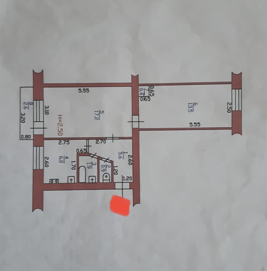 Высота потолков 2.5 м