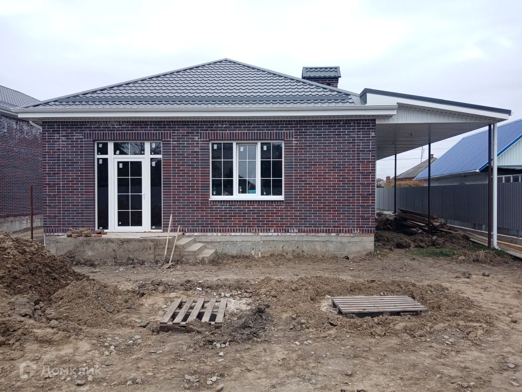 Продается новый дом в тихом районе города. В доме 3 раздельные комнаты, совмещенный санузел и просторная кухня-столовая с выходом во двор. Ведутся работы по предчистовой отделки.  По периметру участка сделан профильный забор с бетонным основанием. Установлен навес для авто. Фасадная часть забора выполнена из кирпича и профиля.