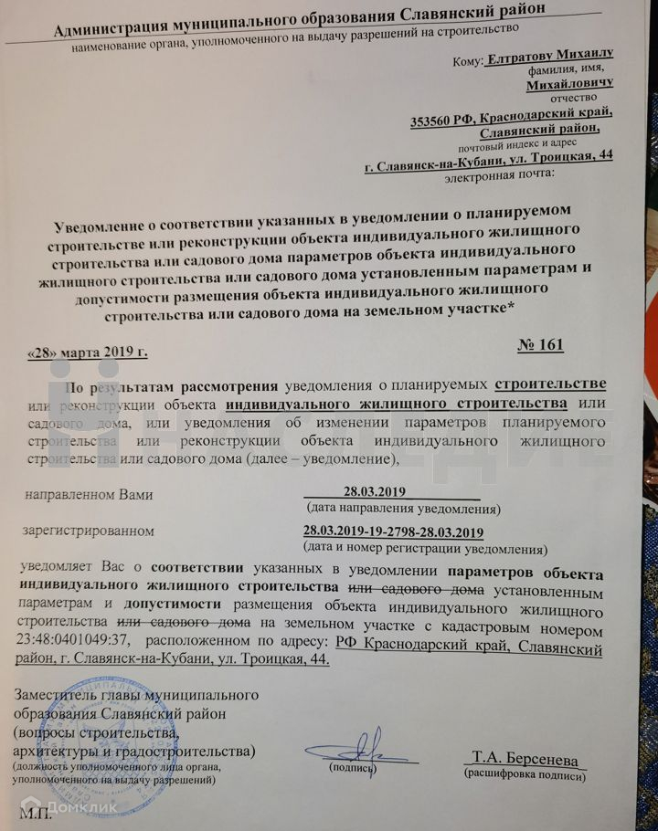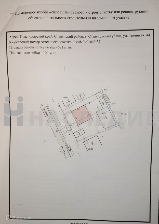 Отдельное преимущество объекта –  объект находится в центре года. Имеется разрешение на строительство  нового  жилого  дома.