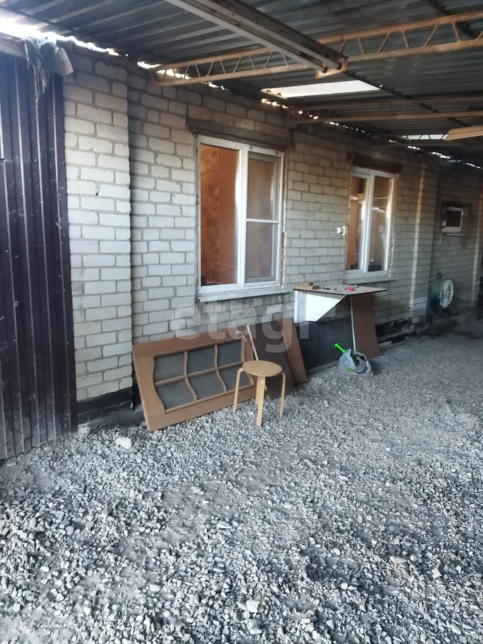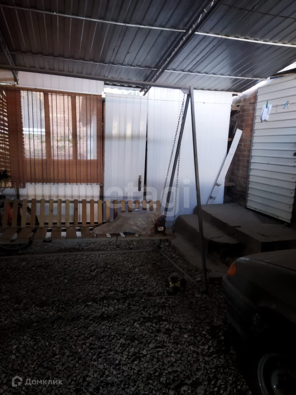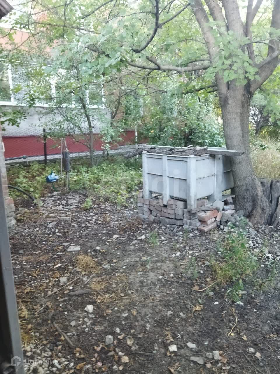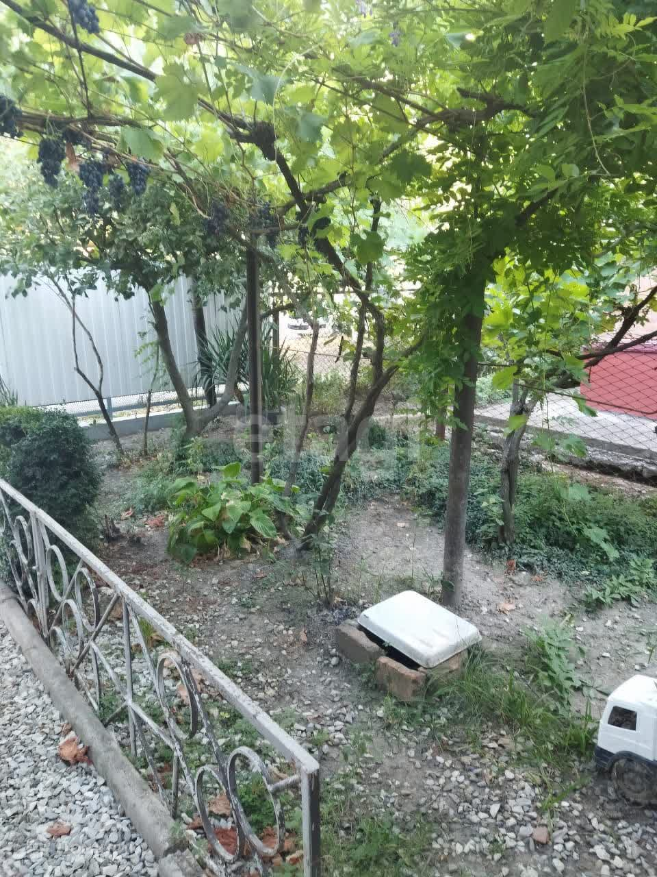 За домом земельный участок с деревьями.Достаточно места для устройства мангальной зоны. Внутри двора парковка для двух машин.