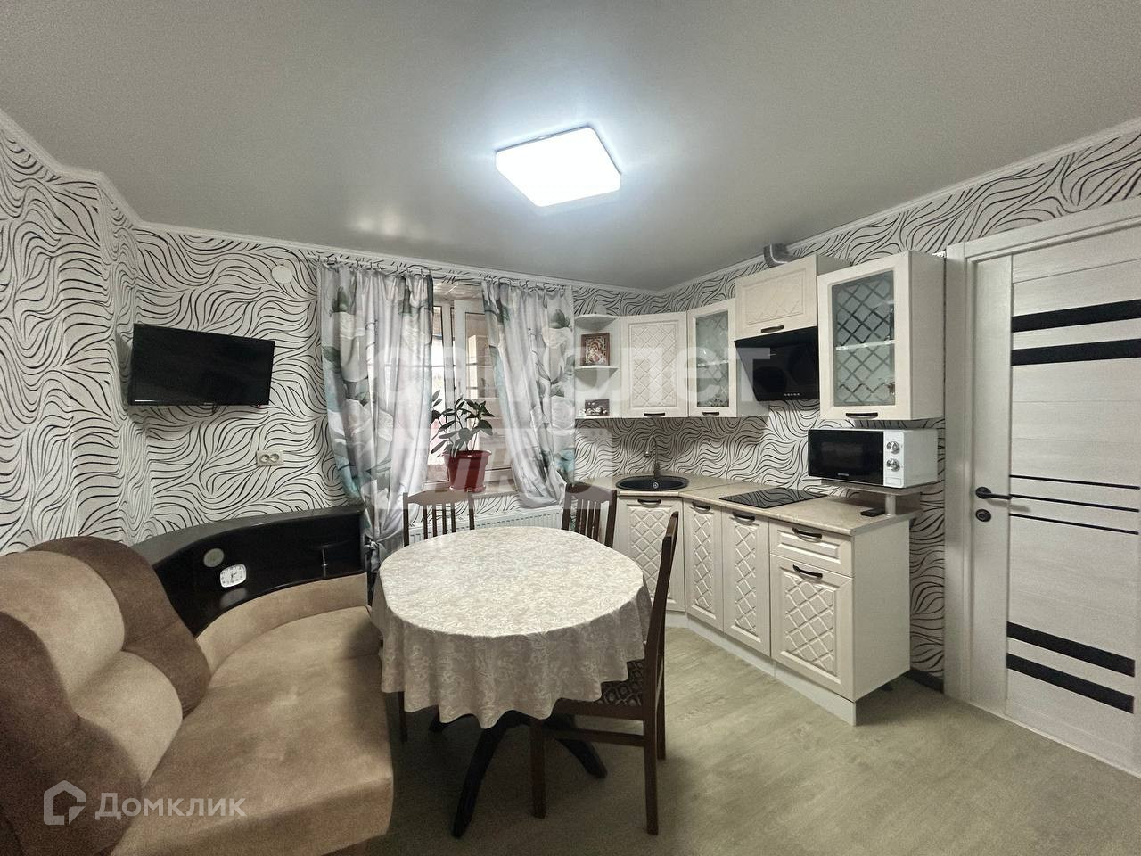 ДОМ: В доме 3 комнаты: две комнаты изолированные и одна проходная. Просторная кухня.  Санузел совмещен, теплые полы.  Окна ПВХ. Выполнен хороший, качественный, современный ремонт. Имеется большой навес. Мебель и бытовая техника остается по согласованию.