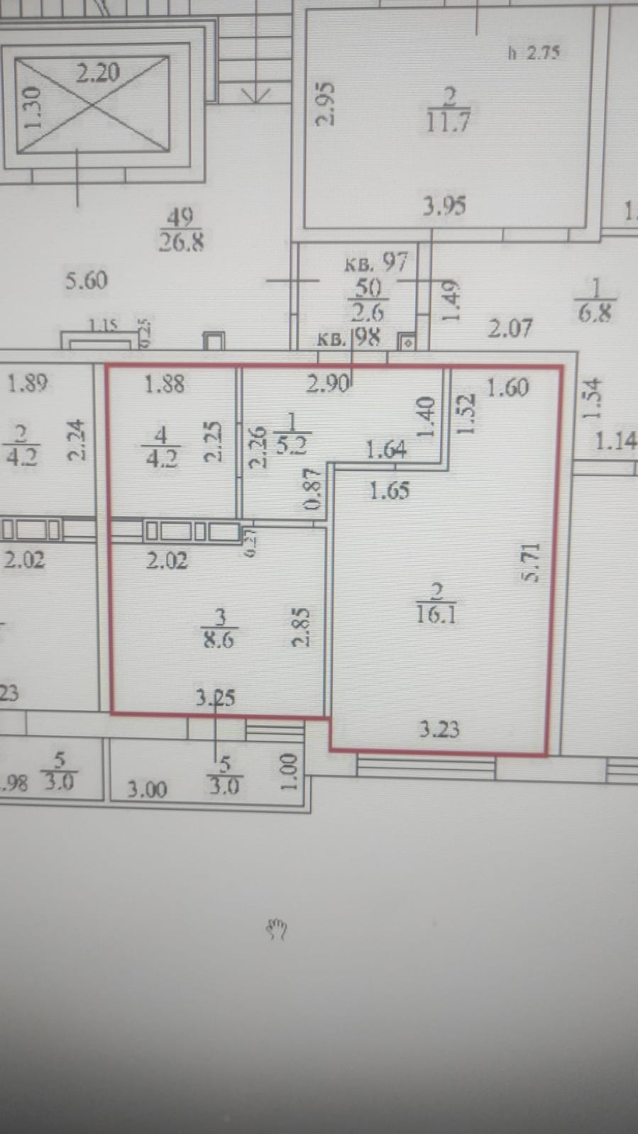 Высота потолков 2.5 м