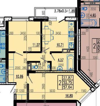 Общая площадь 55.75 м2