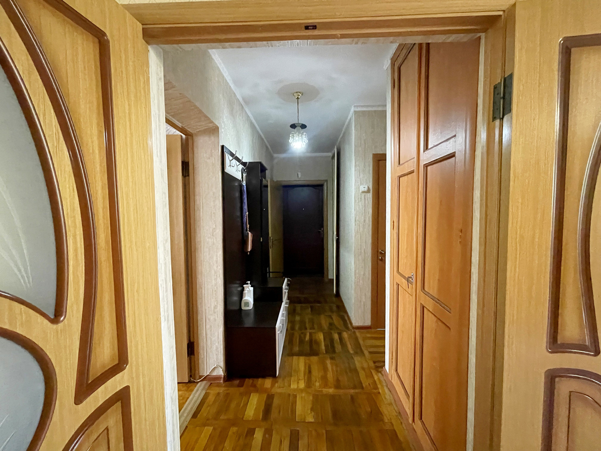 Коммуникации: газ,свет, вода, центральное отопление в квартире, кафель, счетчики, пластиковые окна, паркет, балкон застеклен - 2,7 кв.м , железная входная дверь, подвал для хранения.