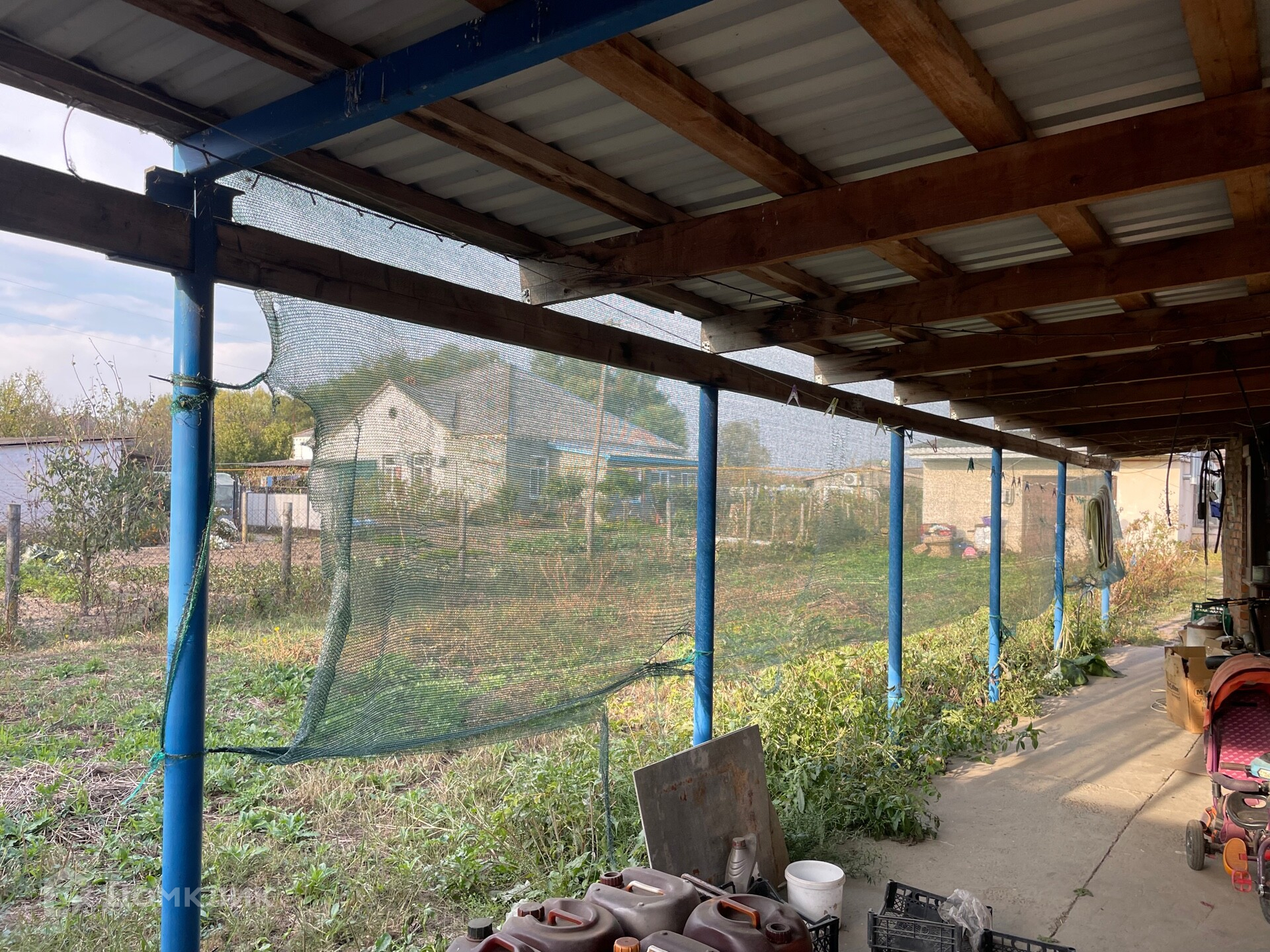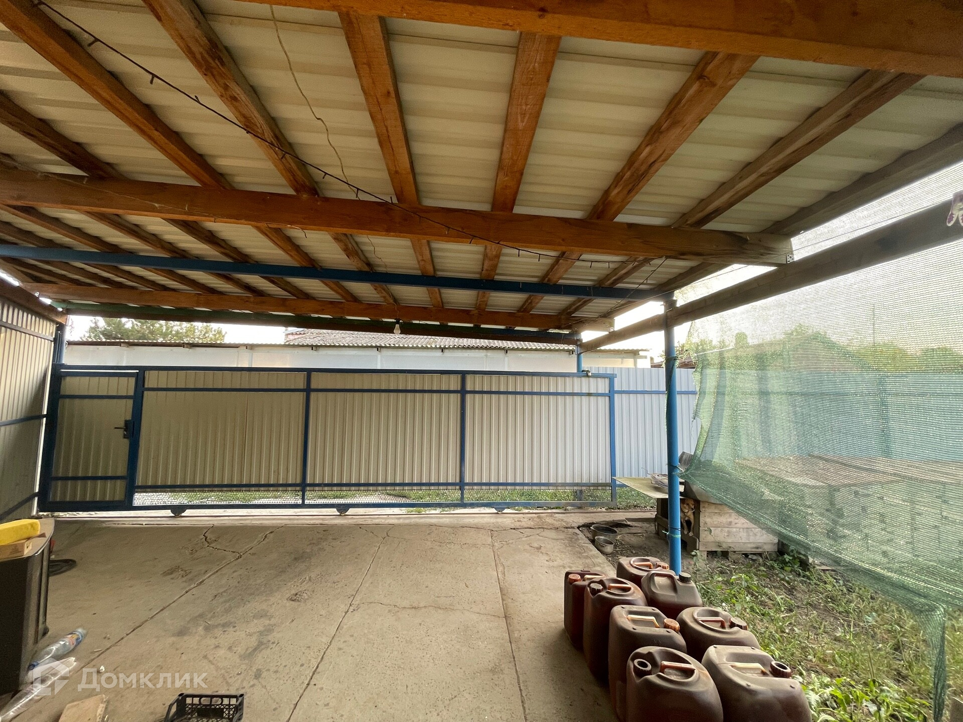 Во дворе навес из металлопрофиля ,двор полностью огорожен, подъезд асфальтированный.