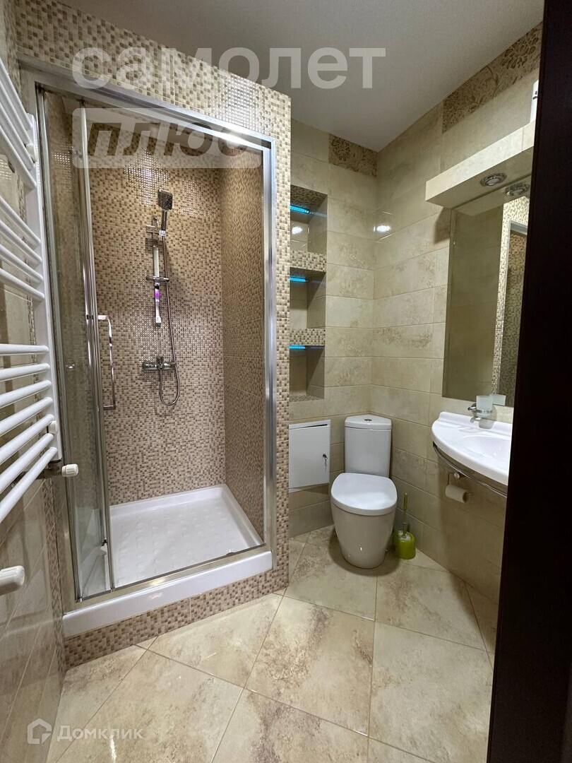 Первый сан узел совмещен - имеет душевую кабину. Второй санузел совмещен с ванной.