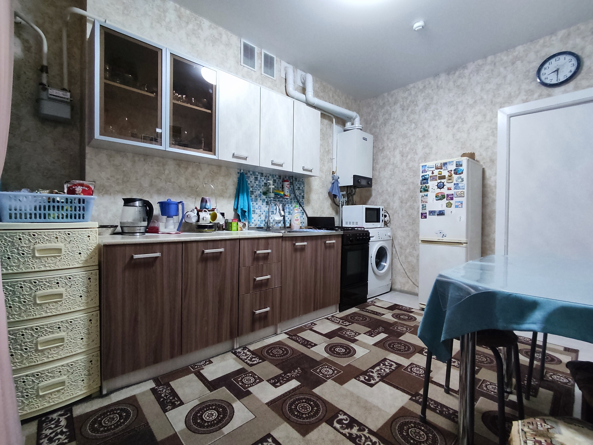 У квартиры очень удачное расположение на 2 этаже (не первый и не последний этаж, в самом центре). Окна выходят на парковку (солнечная сторона). Огромный плюс - индивидуальное отопление (сами регулируете температуру в квартире, всегда горячая вода), что позволяет существенно уменьшить размер коммунальных платежей.