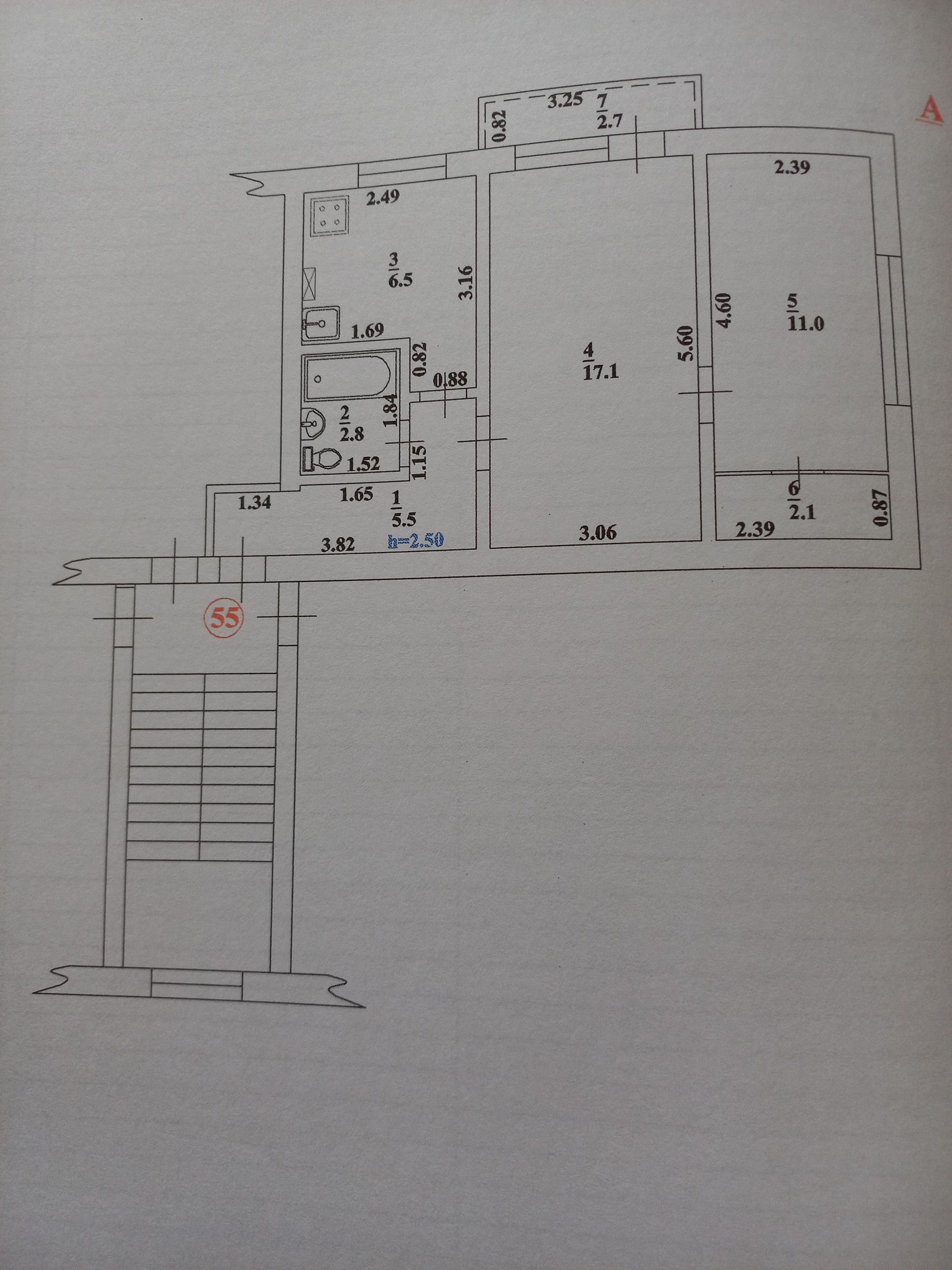 Общая площадь 45.8 м2