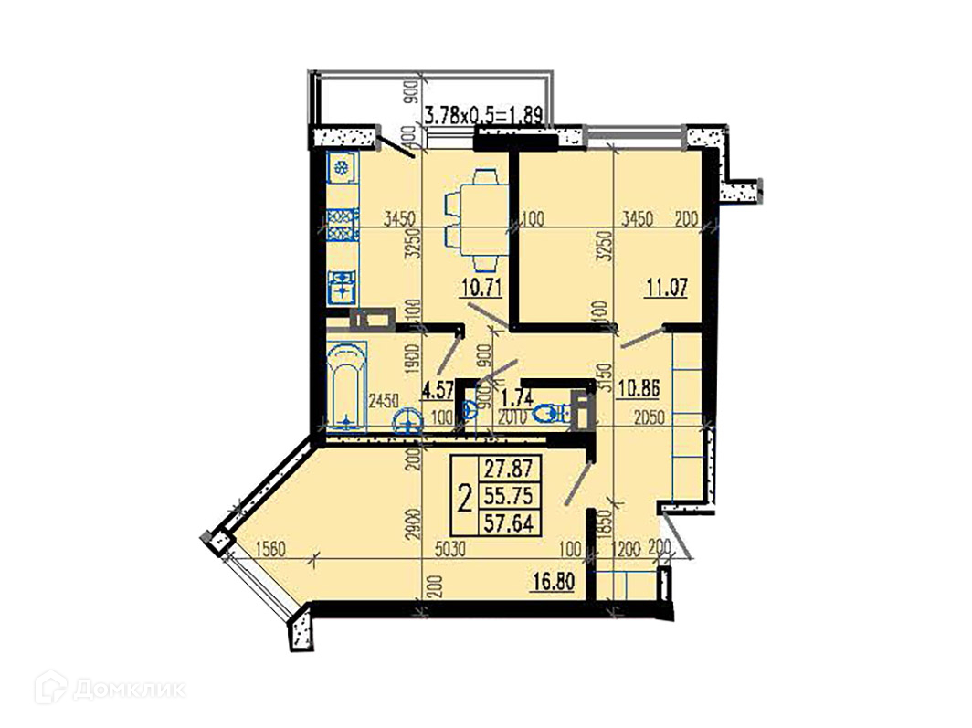 Площадь: 57.6 кв.м.