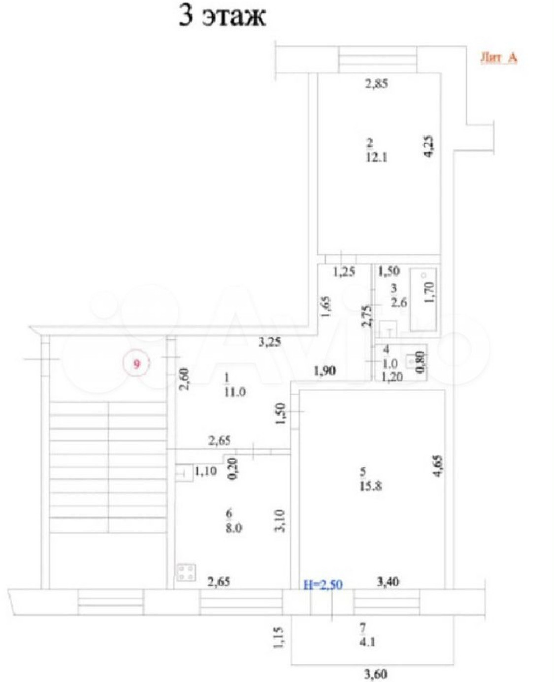 Высота потолков 2.85 м