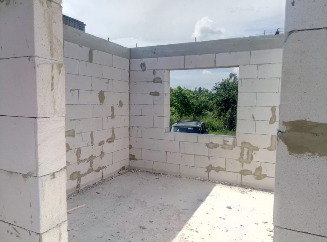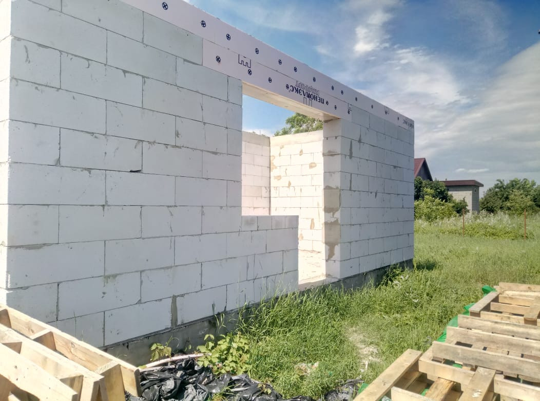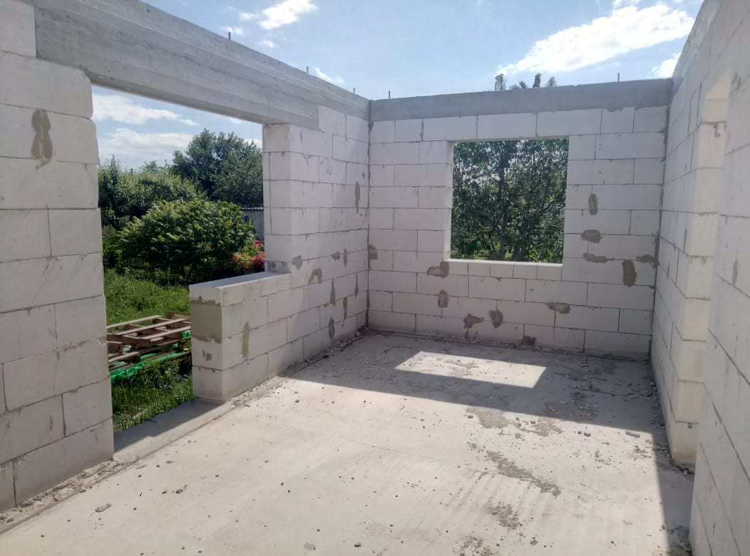 Дом без крыши, только стены. Есть свет. Вода скважина. Септик. Хоз постройка на территории. Строился для себя. 500 метров до речки. Выезд на дорогу рядом.