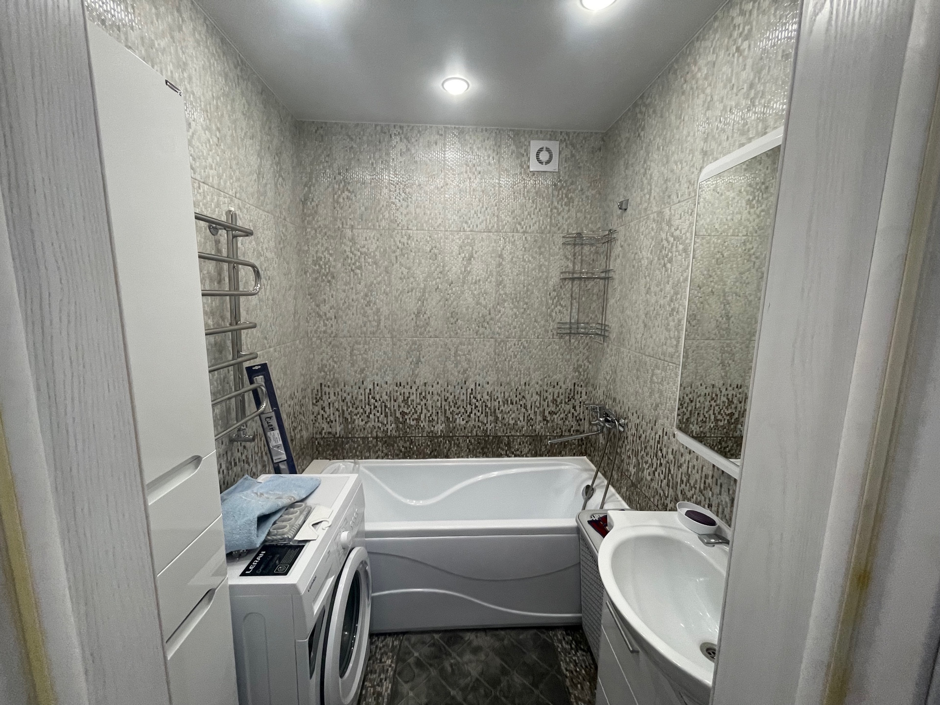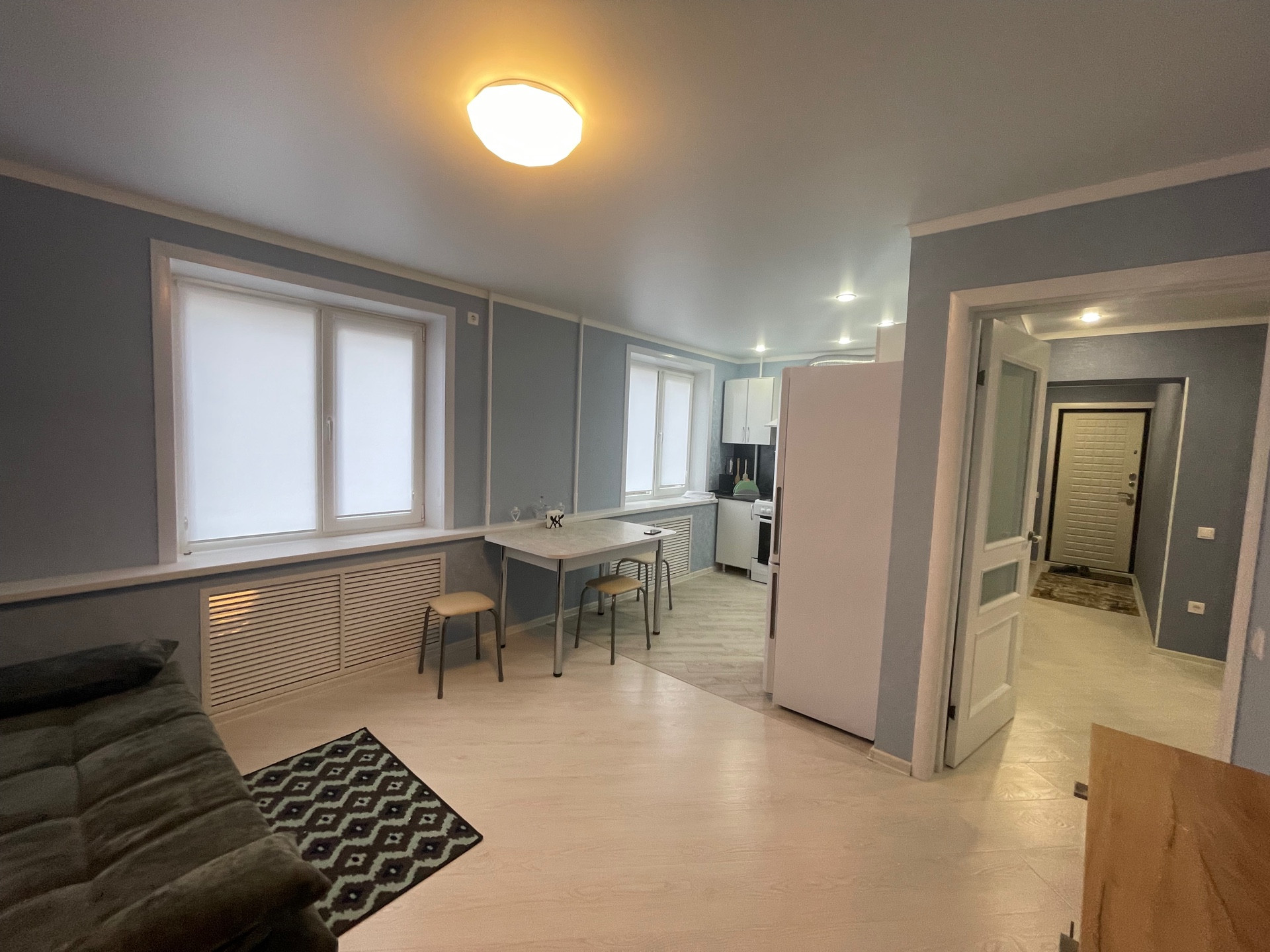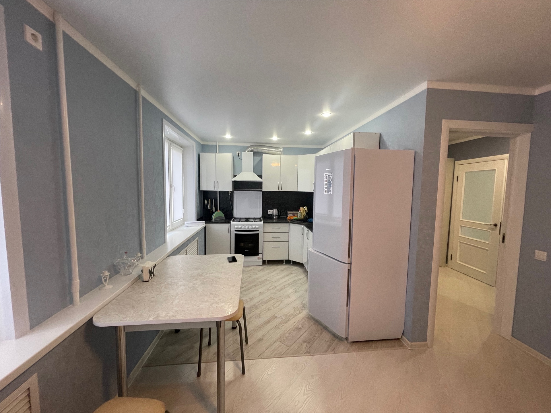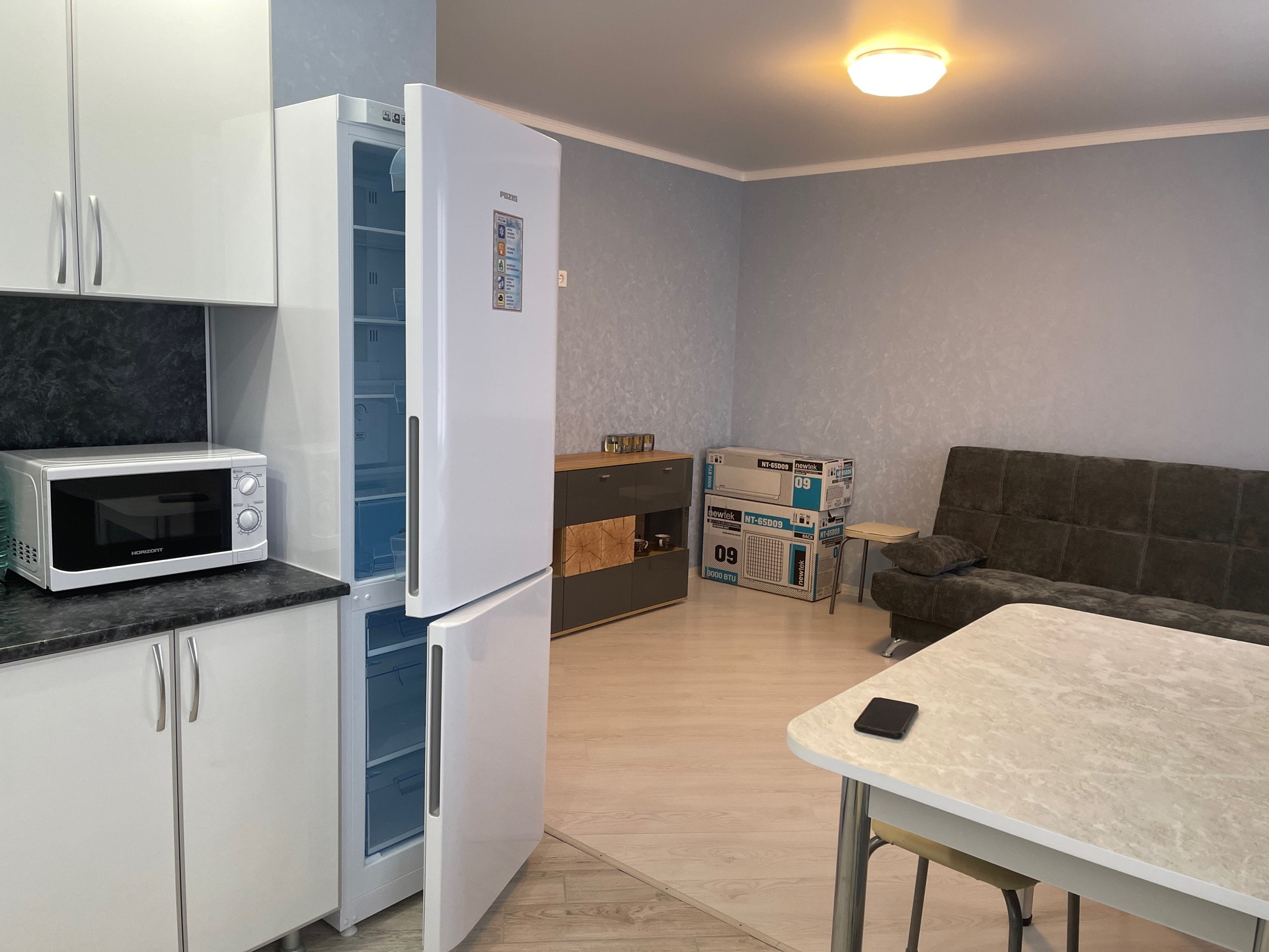 Евроремонт, кухня- гостиная 27 кв.м, новая мебель, новая бытовая техника: холодильник, микроволновая печь, гладилка, сушилка, чайник, стиральная машина, телевизор, телевидение, интернет, 2 сплит системы. Квартира сдается на длительный срок.