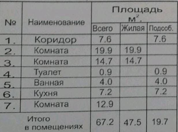 Общая площадь 67.2 м2