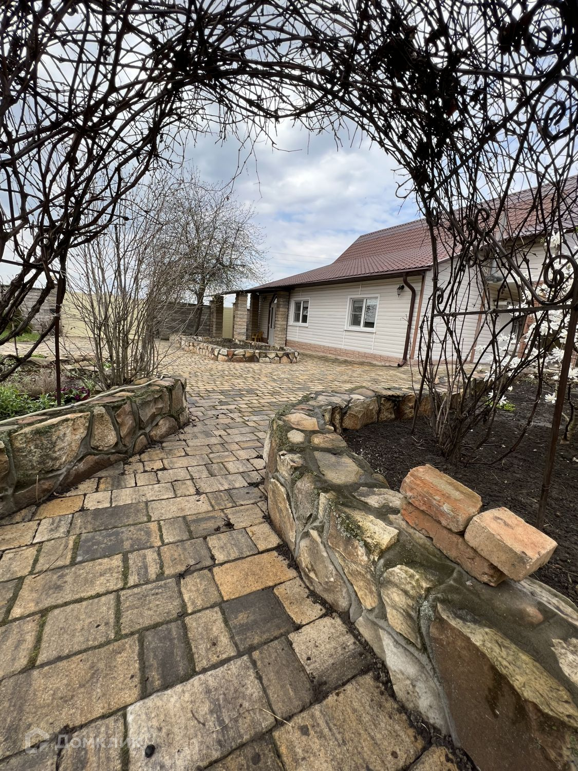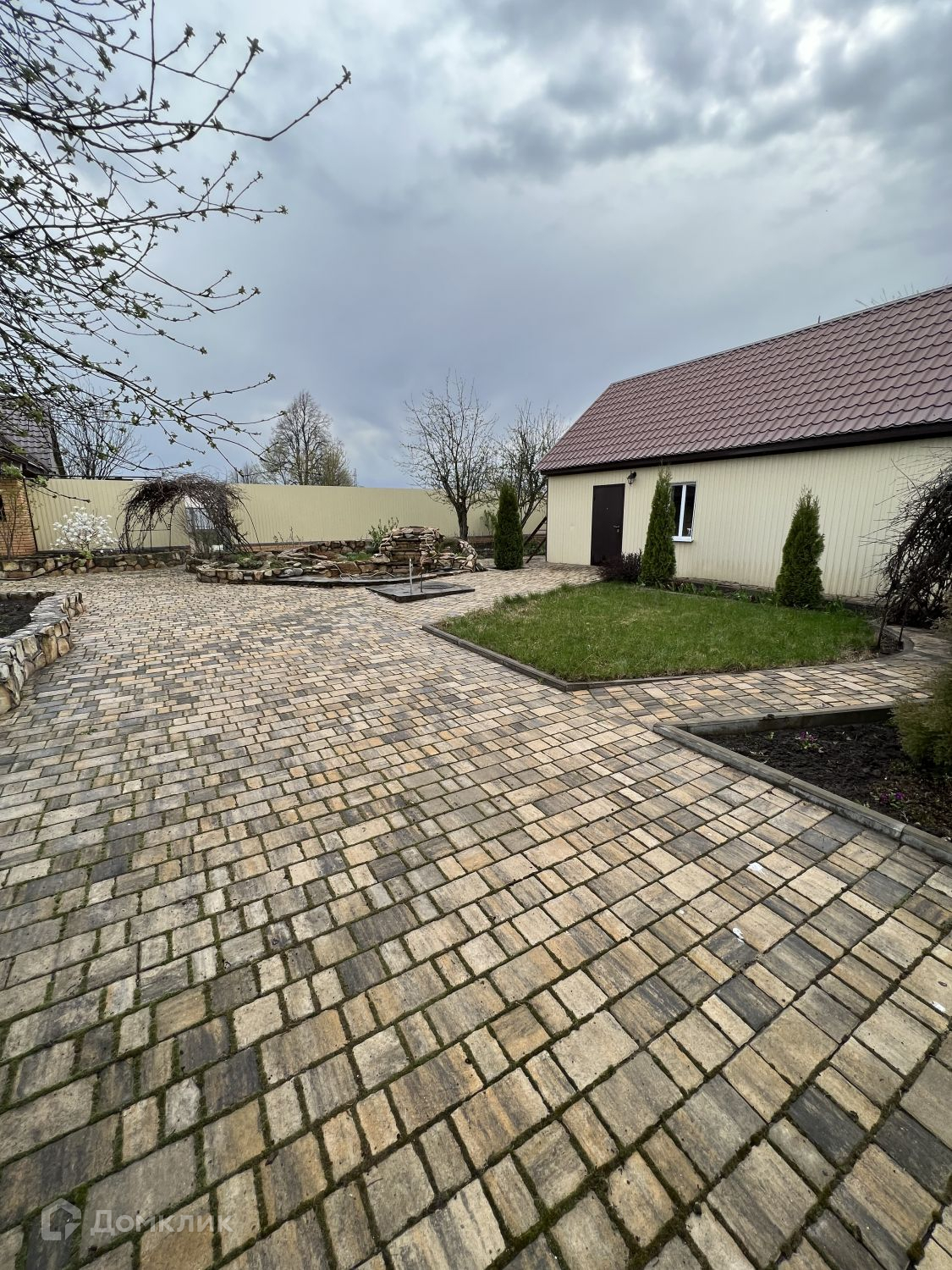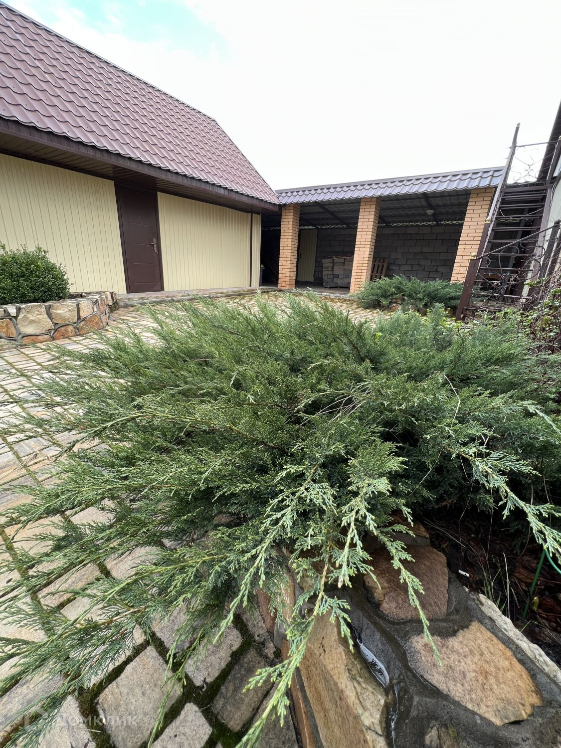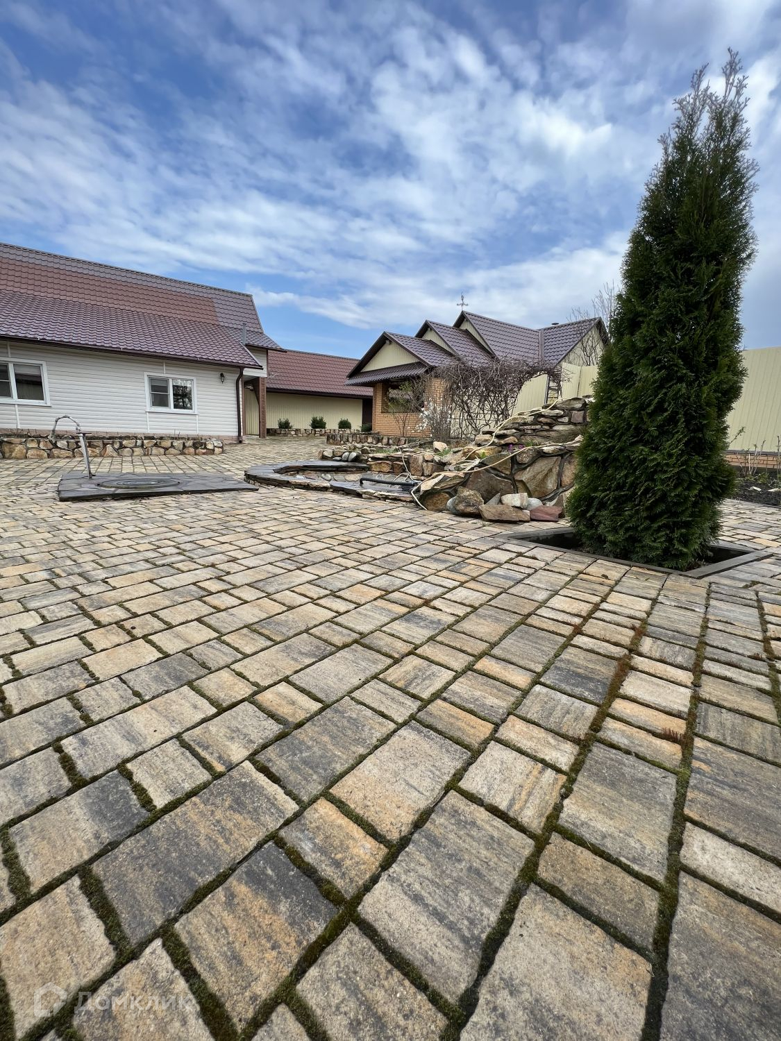 Территория участка ухожена. Растет прекрасный молодой плодоносящий сад ( вишня, яблоня, черешня, груша, персик, абрикос, малина, слива, ежевика, клубника). Весь двор уложен дорогим камнем " Cтарый Город". Есть декоративный бассейн.