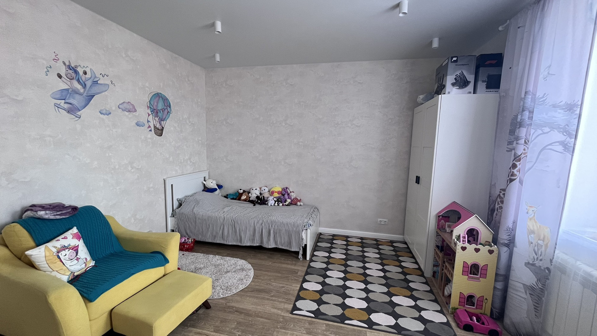 Над гаражом комната с французским окном и выходом на балкон.
